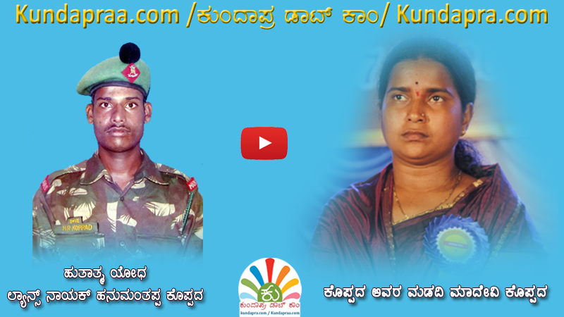 ಏಳೇಳು ಜನ್ಮನೂ ಹುಟ್ಟಿ ಬರೋ ಹಾಗಿದ್ರೆ ಯೋಧನ ಹೆಂಡತಿಯಾಗಿ ಹುಟ್ಟಿ ಬರಲು ಇಷ್ಟ ಪಡ್ತೆನೆ. ಹೀಗೆ ಆತ್ಮಸ್ಥೈರ್ಯದಿಂದ ಹೇಳಿದವರು ಭಾರತದ ಹುತಾತ್ಮ ಯೋಧ ಲ್ಯಾನ್ಸ್ ಹನುಮಂತಪ್ಪ ಕೊಪ್ಪದ ಅವರ ಮಡದಿ ಮಾದೇವಿ ಕೊಪ್ಪದ. ತಮ್ಮ ಮಗಳನ್ನು ಸೈನ್ಯಕ್ಕೆ ಸೇರಿಸುವುದೇ ನನ್ನ ಗುರಿ ಎಂದಿದ್ದ ಈ ದಿಟ್ಟ ಮಹಿಳೆ ಬೈಂದೂರಿನ ಉಪ್ಪುಂದದಲ್ಲಿ ನಡೆದ ಕಾರ್ಯಕ್ರಮವೊಂದರಲ್ಲಿ ಹೇಳಿದ ಮಾತುಗಳಿವು. ಕೆಳಗಿನ ವೀಡಿಯೋ ನೋಡಿ. ಕುಂದಾಪ್ರ ಡಾಟ್ ಕಾಂ ವೀಡಿಯೋ