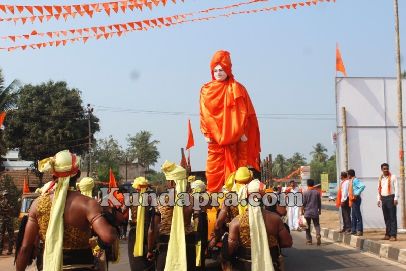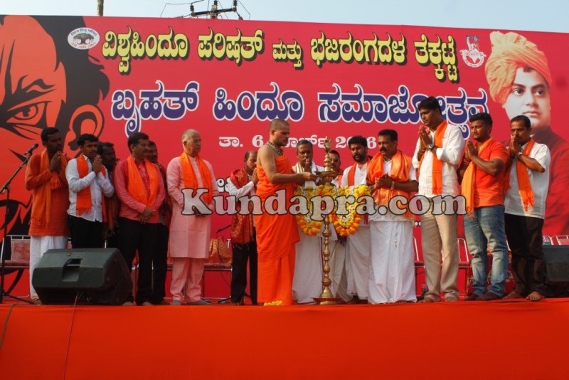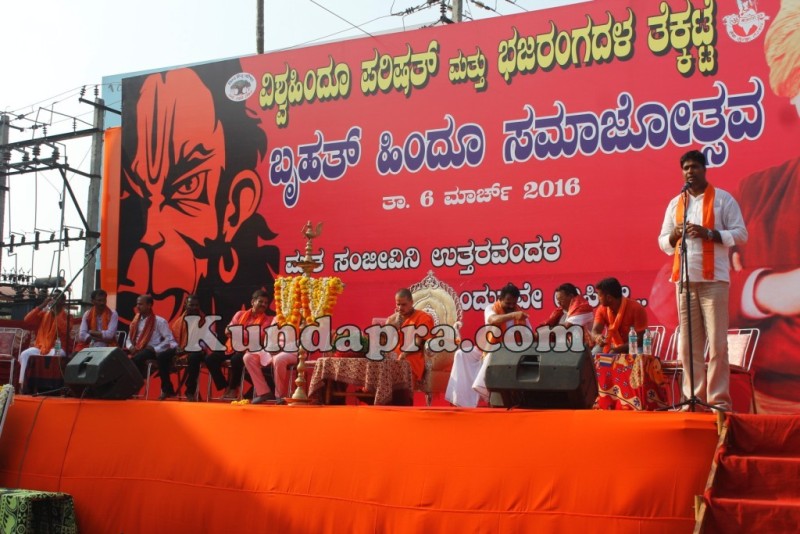 ಭಾನುವಾರ ಮಧ್ಯಾಹ್ನ ವಿಶ್ವ ಹಿಂದೂ ಪರಿಷತ್ ಹಾಗೂ ಬಜರಂಗದಳದ ತೆಕ್ಕಟ್ಟೆ ಘಟಕದ ಆಶ್ರಯದಲ್ಲಿ ಆಯೋಜಿಸಲಾಗಿದ್ದ ವಿರಾಟ ಹಿಂದೂ ಸಮಾಜೋತ್ಸವದಲ್ಲಿ ದಿಕ್ಸೂಚಿ ಭಾಷಣದಲ್ಲಿ ಅವರ ವಾಕ್ಸಮರಕ್ಕಿಳಿದರು. ಇಸ್ಲಾಂ ಧರ್ಮದ ಮತಾಂಧ ಶಕ್ತಿಗಳು ಇಂದಿಗೂ ಗೋಹತ್ಯೆ, ಲವ್ ಜಿಹಾದ್ ನಂತಹ ಸಮಾಜ ಘಾತುಕ ಶಕ್ತಿಗಳನ್ನು ನಿರಾತಂಕವಾಗಿ ಮುಂದವರಿಸಿಕೊಂಡು ಬರುತ್ತಿವೆ. ಬುದ್ದಿವಂತರನ್ನು ವಿಚಾರವಾದಿಗಳನ್ನಾಗಿ ತಯಾರಿಸಿ ಹಿಂದೂ ಧರ್ಮಕ್ಕೆ ಅಪಮಾನವೆಸಗುವ ಕೆಲಸವನ್ನು ನಿರಾತಂಕವಾಗಿ ಮಾಡುತ್ತಲೇ ಬರುತ್ತಿದ್ದಾರೆ. ಇದಕ್ಕೆ ದೇಶದ ಕೆಲವು ಮಾಧ್ಯಮಗಳು ಸಾಥ್ ನೀಡುತ್ತಿರುವುದು ದುರದೃಷ್ಟಕರ ಎಂದರು. ಕುಂದಾಪ್ರ ಡಾಟ್ ಕಾಂ ವರದಿ