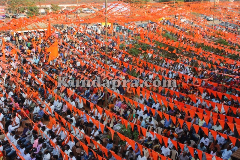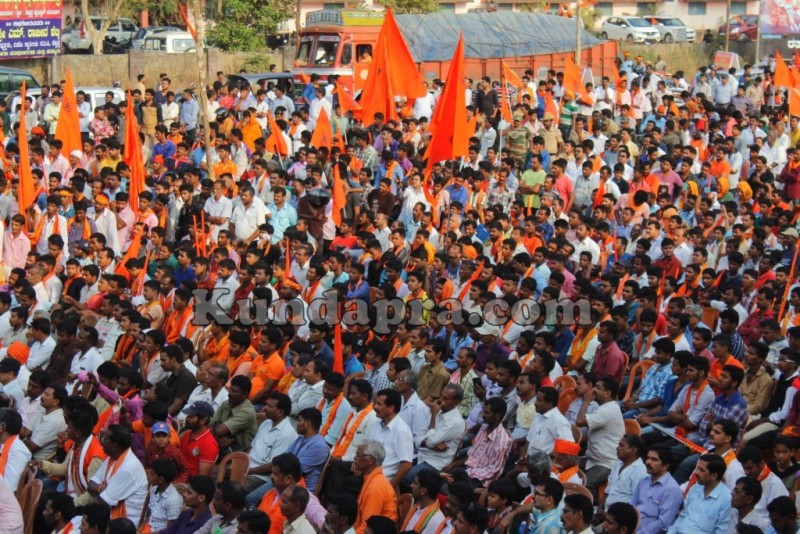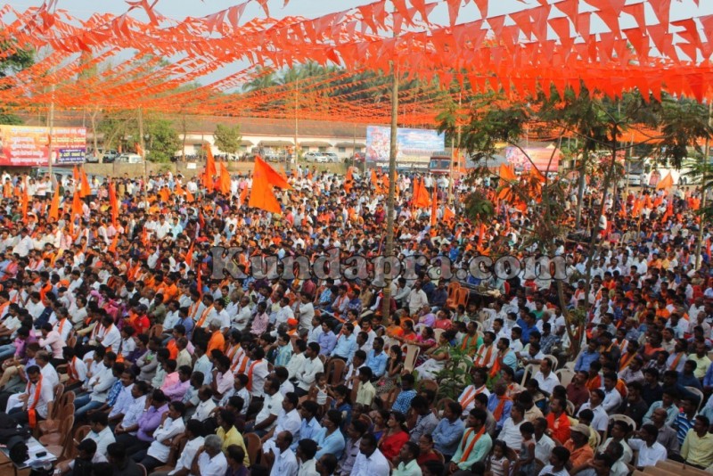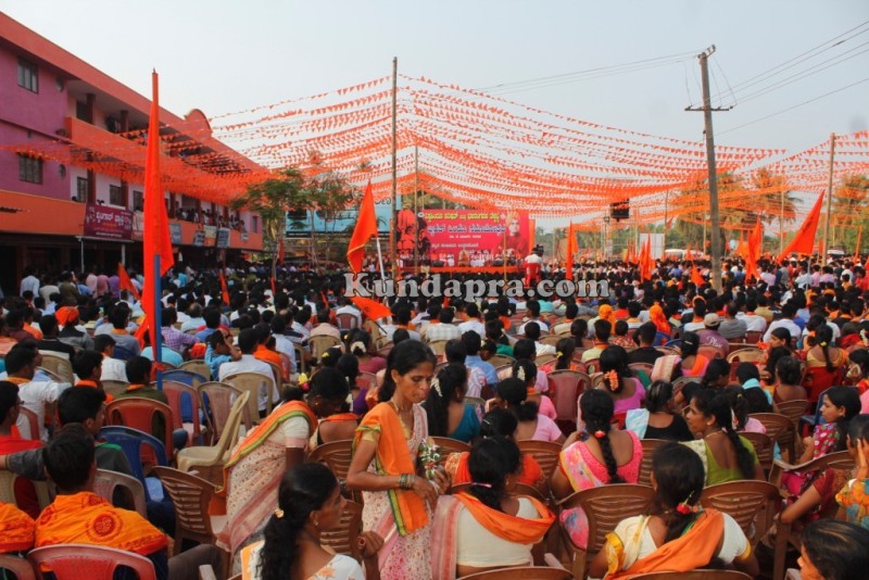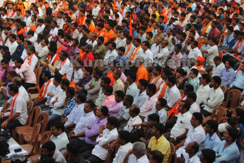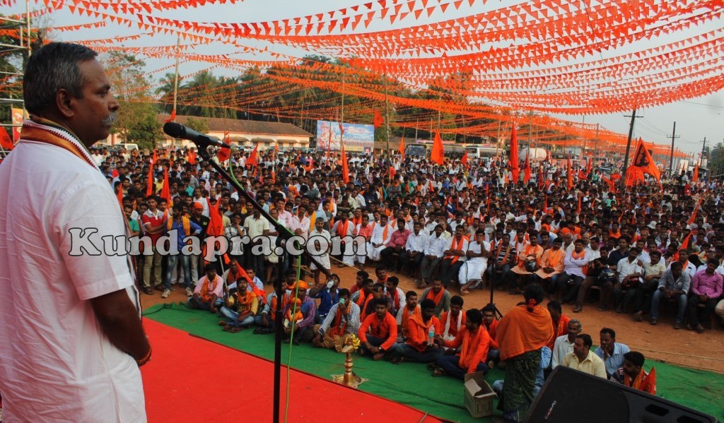 ಗೋಭಕ್ಷನಿಗೆ ರಕ್ಷಣೆ ನೀಡುತ್ತಿರುವ ಕರ್ನಾಟಕದ ಸರಕಾರ ರಕ್ಷಕನನ್ನು ಗುಂಡಾಗಳನ್ನಾಗಿ ಕಾಣುತ್ತಿದೆ. ರಾಜ್ಯದಲ್ಲಿ ಸಮಾಜದ ವಿರೋಧದ ನಡುವೆಯೂ ಒಂದು ವರ್ಗವನ್ನು ಓಲೈಸಲು ಟಿಪ್ಪು ಜಯಂತಿ ಆಚರಿಸಲು ಹೊರಟ ರಾಜ್ಯ ಸರಕಾರಕ್ಕೆ ಪಂಚಾಯತ್ ಚುನಾವಣೆಯಲ್ಲಿ ಉಡುಪಿ, ಕೊಡಗು ಜಿಲ್ಲೆಯ ಜನ ತಕ್ಕ ಉತ್ತರ ನೀಡಿದ್ದಾರೆ. ದೇಶದಲ್ಲಿ ದೇಶದ್ರೋಹಿಗಳಿಗೆ ಬೆಂಬಲ ನೀಡುವ ಕೀಳು ರಾಜಕೀಯ ಆರಂಭಗೊಂಡಿದ್ದು ಅವರನ್ನು ಸಮಾಜ ದೇಶದ್ರೋಹಿಗಳು ಎಂದೇ ಕಾಣದೆ ಬೇರೆ ದಾರಿಯಿಂದ ಎಂದವರು ಗುಡುಗಿದರು. ಕುಂದಾಪ್ರ ಡಾಟ್ ಕಾಂ ವರದಿ