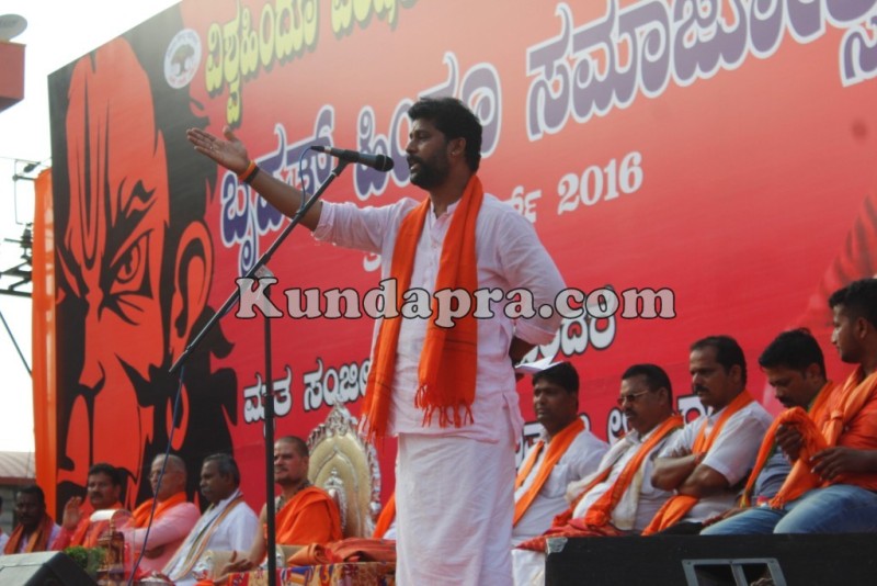 ಬಜರಂಗದಳದ ರಾಜ್ಯ ಸಹಸಂಚಾಲಕ ಶರಣ್ ಪಂಪ್ವೆಲ್ ಮಾತನಾಡಿ ದೇಶದಲ್ಲಿ ಅರವತ್ತು ಸಾವಿರಕ್ಕೂ ಹೆಚ್ಚು ವಿಹಿಂಪ ಘಟಕಗಳು ಧರ್ಮ ಜಾಗೃತಿ, ಸೇವಾ ಕೈಂಕರ್ಯದಲ್ಲಿ ತೊಡಗಿಕೊಂಡಿದೆ. ಸಂಘಟನೆಯನ್ನು ಹತ್ತಿಕ್ಕುವ ಷಡ್ಯಂತ್ರ ನಡೆದರು ನಮ್ಮ ಬಲ ಕುಗ್ಗಿಲ್ಲ. ಹಿಂದೂ ಸಮಾಜದ ರಕ್ಷಣೆಗಾಗಿ ಜೈಲಿಗೆ ಹೋಗಲೂ ಸಿದ್ದ, ಪೆಟ್ಟು ತಿನ್ನಲೂ ಸಿದ್ಧ ಎಂದರು.