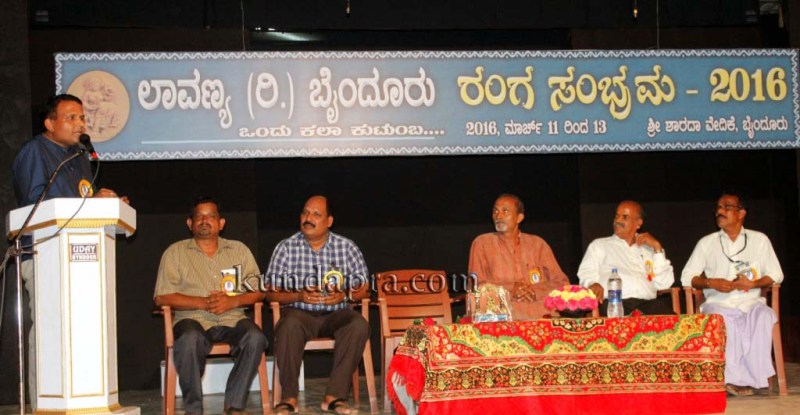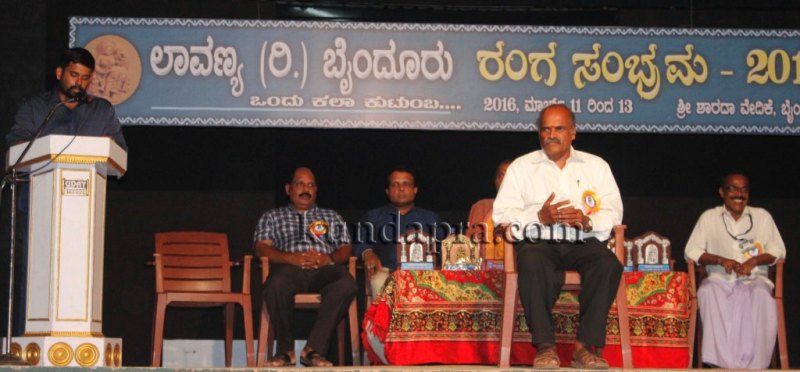 ಲಾವಣ್ಯ ರಿ. ಬೈಂದೂರು ಆಶ್ರಯದಲ್ಲಿ ಮೂರು ದಿನಗಳ ಕಾಲ ಬೈಂದೂರಿನ ಶಾರದಾ ವೇದಿಕೆಯಲ್ಲಿ ಆಯೋಜಿಸಲಾದ ರಂಗ ಸಂಭ್ರಮ-2016 ಹಾಗೂ 39ನೇ ವಾರ್ಷಿಕೋತ್ಸವದ ಕಾರ್ಯಕ್ರಮದಲ್ಲಿ ಅವರು ಮಾತನಾಡಿದರು. ಇಂದು ಜಾತಿ ಸಂಘಟನೆಗಳಿಗೆ ದೊರೆಯುವಷ್ಟು ಬೆಂಬಲ ಕಲಾ ಸಂಘಟಕರಿಗೆ ದೊರೆಯುತ್ತಿಲ್ಲ. ಆದಾಗ್ಯೂ ಎಲ್ಲಾ ಏಳುಬೀಳುಗಳ ನಡುವೆ ಉತ್ಕೃಷ್ಟವಾದ ನಾಟಕಗಳನ್ನು ನೀಡುತ್ತಾ, ತನ್ನದೇ ಆದ ಪ್ರೇಕ್ಷಕ ವರ್ಗವನ್ನು ಸಂಪಾದಿಸಿಕೊಂಡಿರುವುದು ಮುನ್ನಡೆಯುತ್ತಿರುವುದು ಶ್ಲಾಘನೀಯ ಎಂದರು. ಕುಂದಾಪ್ರ ಡಾಟ್ ಕಾಂ ಸುದ್ದಿ