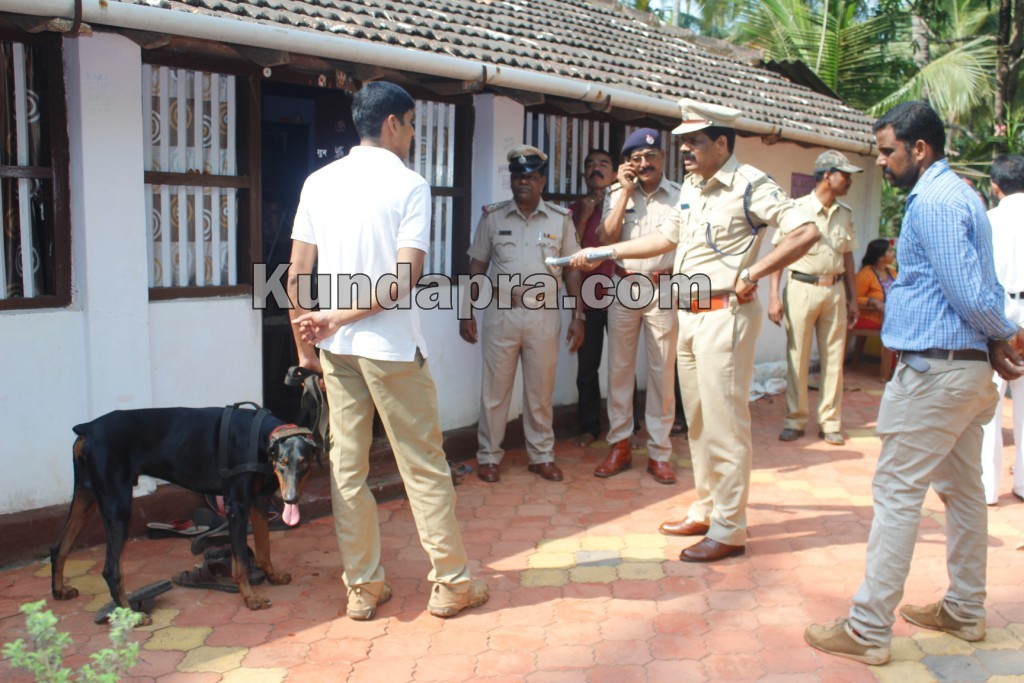 ಪೊಲೀಸರು ಮೊಕ್ಕಾಂ: ವಿಷಯ ತಿಳಿಯುತ್ತಿದ್ದಂತೆ ಸ್ಥಳಕ್ಕಾಗಮಿಸಿ ಪೊಲೀಸರು ಘಟನೆಯ ಬಗ್ಗೆ ಮಾಹಿತಿ ಪಡೆದುಕೊಂಡಿದ್ದಾರೆ. ಶ್ವಾನ ದಳ, ಬೆರಳಚ್ಚು ತಜ್ಞರು ಸ್ಥಳಕ್ಕಾಗಮಿಸಿ ಪರಿಶೀಲನೆ ನಡೆಸಿದ್ದಾರೆ. ಉಡುಪಿ ಎಸ್ಪಿ ಅಣ್ಣಾಮಲೈ ಖುದ್ದು ಸ್ಥಳಕ್ಕಾಗಮಿಸಿ ಪರಿಶೀಲನೆ ನಡೆದ್ದಾರೆ. ಡಿವೈಎಸ್ಪಿ ಮಂಜುನಾಥ ಶೆಟ್ಟಿ, ವೃತ್ತನಿರೀಕ್ಷಕ ಸುದರ್ಶನ್, ಬೈಂದೂರು ಠಾಣಾಧಿಕಾರಿ ಸಂತೋಷ್ ಕಾಯ್ಕಿಣಿ, ಗಂಗೊಳ್ಳಿ ಠಾಣಾಧಿಕಾರಿ ಸುಬ್ಬಣ್ಣ ಹಾಗೂ ಇತರ ಸಿಬ್ಬಂಧಿಗಳು ತನಿಕೆಯಲ್ಲಿ ಪಾಲ್ಗೊಂಡಿದ್ದರು.