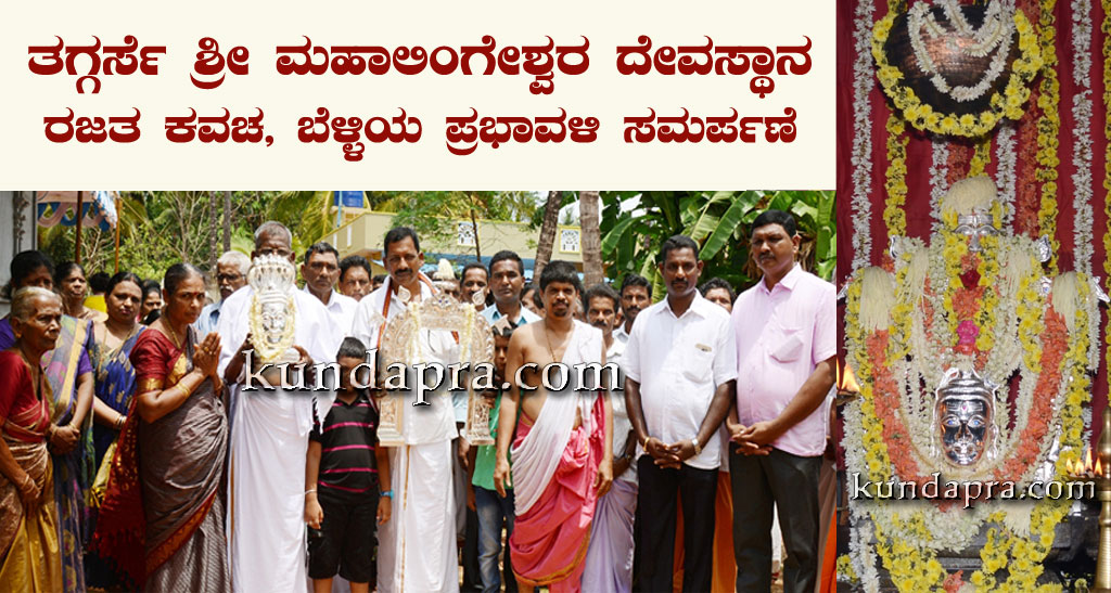 ಬೈಂದೂರು: ಇಲ್ಲಿನ ತಗ್ಗರ್ಸೆ ಗ್ರಾಮದ ಶ್ರೀ ಮಹಾಲಿಂಗೇಶ್ವರ ದೇವರ ಎರಡನೇ ಪ್ರತಿಷ್ಟಾ ವರ್ಧಂತ್ಯೋತ್ಸದ ಪ್ರಯುಕ್ತ ಬೈಂದೂರು ವ್ಯವಸಾಯ ಸೇವಾ ಸಹಕಾರಿ ಸಂಘದ ಅಧ್ಯಕ್ಷ ಹಾಗೂ ಉದ್ಯಮಿ ಟಿ. ನಾರಾಯಣ ಹೆಗ್ಡೆ ಮತ್ತು ಮಕ್ಕಳು ಶ್ರೀದೇವರಿಗೆ ರಜತ ಕವಚ ಮತ್ತು ದಾನಿಗಳು ಹಾಗೂ ಸಾರ್ವಜನಿಕರ ನೆರವಿನಿಂದ ಬೆಳ್ಳಿಯ ಪ್ರಭಾವಳಿ ಸಮರ್ಪಿಸಲಾಯಿತು. ಈ ಸಂದರ್ಭ ವಂಡ್ಸೆ ಜಿಪಂ ಸದಸ್ಯ ಕೆ. ಬಾಬು ಶೆಟ್ಟಿ ಹಾಜರಿದ್ದರು.