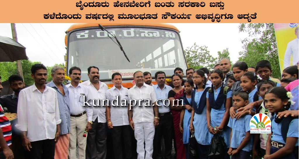 ಬೈಂದೂರು ಹೇನಬೇರಿಗೆ ಬಂತು ಸರಕಾರಿ ಬಸ್ಸು. ಒಂದು ವರ್ಷದಲ್ಲಿ ಮೂಲಭೂತ ಸೌಕರ್ಯ ಅಭಿವೃದ್ಧಿಗೂ ಆದ್ಯತೆ