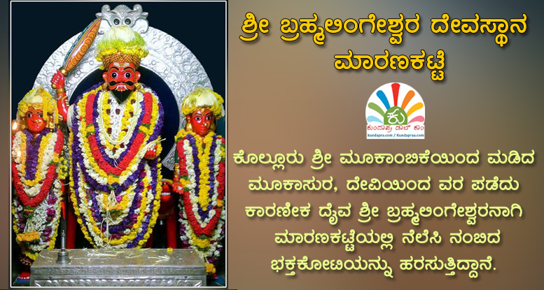 ಮೂಲೋಕದೊಡತಿ ಕೊಲ್ಲೂರು ಶ್ರೀ ಮೂಕಾಂಬಿಕೆಯಿಂದ ಮಡಿದ ಮೂಕಾಸುರ, ದೇವಿಯಿಂದ ವರ ಪಡೆದು ಕಾರಣಿಕ ದೈವ ಶ್ರೀ ಬ್ರಹ್ಮಲಿಂಗೇಶ್ವರನಾಗಿ ಮಾರಣಕಟ್ಟೆಯಲ್ಲಿ ನೆಲೆನಿಂತು ನಂಬಿಬಂದ ಭಕ್ತಕೋಟಿಯನ್ನು ಹರಸುತ್ತಿದ್ದಾನೆ. ದೇವಿಯಿಂದ ಮೂಕಾಸುರ ಹತನಾದ ಕ್ಷೇತ್ರವೇ ಮಾರಣಕಟ್ಟೆಯಾಗಿದ್ದು ಪ್ರಸಿದ್ದಿ ಪಡೆದಿದ್ದು, ಇಲ್ಲಿಯೇ ಶ್ರೀ ಬ್ರಹ್ಮಲಿಂಗೇಶ್ವರನ ಸನ್ನಿಧಾನವಿದೆ. ಕುಂದಾಪುರದಿಂದ ಕೊಲ್ಲೂರಿಗೆ ಸಂಚರಿಸುವ ಮಾರ್ಗ ಮಧ್ಯದಲ್ಲಿ ಚಿತ್ತೂರಿನ ಮೂಲಕ ತೆರಳಿದರೇ ಮಾರಣಕಟ್ಟೆ ಶ್ರೀ ಬ್ರಹ್ಮಲಿಂಗೇಶ್ವರನ ದರ್ಶನ ಪಡೆಯಬಹುದಾಗಿದೆ.