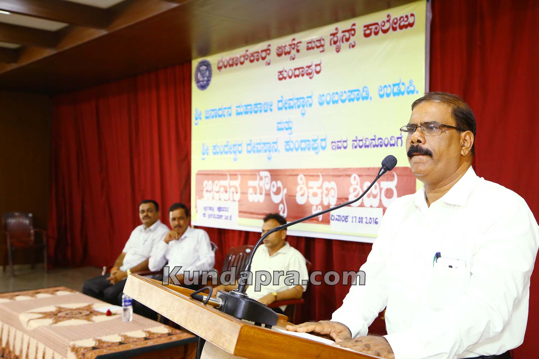 ಅವರು ಇಅಲ್ಲಿನ ಭಂಡಾರ್ಕಾರ್ಸ್ ಕಾಲೇಜಿನಲ್ಲಿ ಶ್ರೀ ಜನಾರ್ದನ ಮಹಾಕಾಳಿ ದೇವಸ್ಥಾನ, ಅಂಬಲಪಾಡಿ, ಮತ್ತು ಶ್ರೀ ಕುಂದೇಶ್ವರ ದೇವಸ್ಥಾನ, ಕುಂದಾಪುರ ಇವರ ನೆರವಿನೊಂದಿಗೆ ನಡೆದ ಒಂದು ದಿನದ ಜೀವನ ಮೌಲ್ಯ ಶಿಕ್ಷಣ ಶಿಬಿರವನ್ನು ಉದ್ಘಾಟಿಸಿ ಮಾತನಾಡಿದರು.