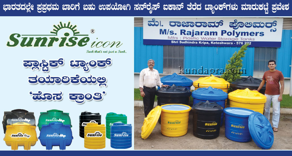 ಕೈಗಾರಿಕೋದ್ಯಮದಲ್ಲಿ ಒಂದಲ್ಲ ಒಂದು ಹೊಸ ಸಂಶೋಧನೆ ಮಾಡಿ ಗ್ರಾಹಕರಿಗೆ ಅನುಕೂಲ ಹೆಚ್ಚಿಸುತ್ತಿರುವ ಕರಾವಳಿಯ ಹೆಸರಾಂತ ಕೈಗಾರಿಕ ಘಟಕ ಕೋಟೇಶ್ವರದ ರಾಜಾರಾಮ್ ಪಾಲಿಮರ್ಸ್ ಭಾರತದಲ್ಲೇ ಪ್ರಪ್ರಥಮ ಬಾರಿಗೆ ಬಹು ಉಪಯೋಗಿ ಸನ್ರೈಸ್ ಐಕಾನ್ ತೆರೆದ ಟ್ಯಾಂಕ್ನ್ನು ಸಂಶೋಧಿಸಿ ಯಶಸ್ವಿಯಾಗಿ ಮಾರುಕಟ್ಟೆಗೆ ಬಿಡುಗಡೆಗೊಳಿಸಿದೆ.