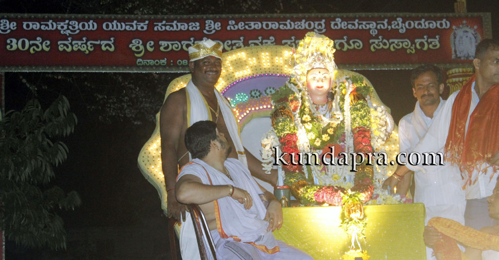 ಬೈಂದೂರು: ಶ್ರೀ ರಾಮಚಂದ್ರ ದೇವಸ್ಥಾನದ ಶ್ರೀ ರಾಮಕ್ಷತ್ರಿಯ ಯುವಕ ಮಂಡಳಿಯ 30ನೇ ವರ್ಷದ ಶಾರದೋತ್ಸವದ ಪುರಮೆರವಣಿಗೆ ವಿಜೃಂಭಣೆಯಿಂದ ಜರುಗಿತು. ಡೋಲು, ಕೀಲು ಕುದುರೆ, ಡೈನಾಸಾರೋ, ಬೆಂಕಿಯಾಟ, ಹುಲಿವೇಶ ಟ್ಯಾಬ್ಲೋ ಸಾರ್ವಜನಿಕರ ಗಮನ ಸೆಳೆದವು. ಬೈಂದೂರಿನ ಪ್ರಮುಖ ಬೀದಿಗಳಲ್ಲಿ ಮೆರವಣಿಗೆ ಸಾಗಿ ಕೊನೆಯಲ್ಲಿ ಶಾರದಾ ಮಾತೆಯ ಜಲಸ್ತಂಭನ ಕಾರ್ಯಕ್ರಮ ಜರುಗಿತು.