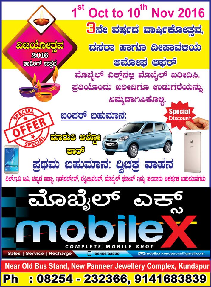 Home » MobileX Kundapur: 3rd Anniversary and Deepawali Special Offer