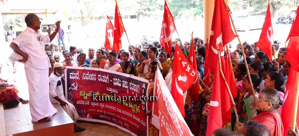 ಬೈಂದೂರು ವಿಶೇಷ ತಹಶೀಲ್ದಾರ್ ಕಚೇರಿಯ ಆವರಣದಲ್ಲಿ ನಿವೇಶನ ರಹಿತರು ಭೂಮಿ ಹಕ್ಕುಪತ್ರಕ್ಕಾಗಿ ಸಲ್ಲಿಸಿದ್ದ ಅರ್ಜಿಗಳನ್ನು ತಕ್ಷಣ ವಿಲೇವಾರಿ ಮಾಡುವಂತೆ ಆಗ್ರಹಿಸಿ ನಡೆದ ಪ್ರತಿಭಟನೆಯಲ್ಲಿ ಮಾತನಾಡಿದರು. ಜನಸಾಮಾನ್ಯರು ಬೆವರು ಸುರಿಸಿ ದುಡಿದು ತೆರಿಗೆ ಕಟ್ಟಿದ ಹಣದಲ್ಲಿ ಜನಪ್ರತಿನಿಧಿಗಳು ಮೆರೆಯುತ್ತಿದ್ದು, ರಿಯಲ್ ಎಸ್ಟೇಟ್, ಗುತ್ತಿಗೆ ಕಾಮಗಾರಿ, ಅಕ್ರಮ ವ್ಯವಹಾರಗಳ ಮೂಲಕ ಬಡವರನ್ನು ಲೂಟಿ ಮಾಡುತ್ತಿದ್ದಾರೆ. ಸರಕಾರವೂ ಕೂಡಾ ಈ ವ್ಯವಸ್ಥೆಯಲ್ಲಿ ಶಾಮೀಲಾಗಿದ್ದು, ಸರ್ಕಾರಿ ಭೂಮಿಯನ್ನು ಬಡನಿವೇಶನ ರಹಿತರಿಗೆ ಹಂಚಿಕೊಡುವಲ್ಲಿ ದಿನದೂಡುತ್ತಿದ್ದಾರೆ. ನಾವು ನಮ್ಮ ಹಕ್ಕನ್ನು ಕೇಳುತ್ತಿದ್ದೇವೆಯೇ ಹೊರತು ಯಾರಪ್ಪನ ಆಸ್ತಿಯನ್ನಲ್ಲ. ಅಕ್ರಮ-ಸಕ್ರಮದ ಅರ್ಜಿ ವಾರದಲ್ಲಿ ಇತ್ಯರ್ಥವಾಗುದಾದರೆ ನಮ್ಮ ಬೇಡಿಗಳಿಗೆ ಮೀನಾ ಮೇಷ ಮಾಡುತ್ತಿರುವುದೇಕೆ ಎಂದು ಆಕ್ರೋಶ ವ್ಯಕ್ತಪಡಿಸಿದರು.