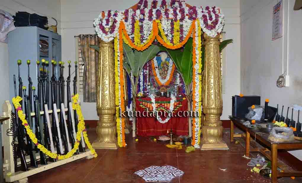 ಬೈಂದೂರು: ಬೈಂದೂರು ಆರಕ್ಷಕ ಠಾಣೆಯಲ್ಲಿ ಬೆಳಿಗ್ಗೆ ದೀಪಾವಳಿಯ ಪ್ರಯುಕ್ತ ವಿಶೇಷ ಲಕ್ಷ್ಮೀಪೂಜೆ ಹಾಗೂ ಆಯುಧಪೂಜೆ ವಿಜೃಭಣೆಯಿಂದ ನಡೆಯಿತು. ವೃತ್ತ ನಿರೀಕ್ಷಕ ರಾಘವ ಪಡೀಲ್, ಠಾಣಾಧಿಕಾರಿ ಸಂತೋಷ್ ಆನಂದ್ ಕಾಯ್ಕಿಣಿ, ಸಿಬ್ಬಂದಿಗಳು ಹಾಗೂ ಇವರೆಲ್ಲರ ಕುಟುಂಬ ಸದಸ್ಯರು ಪೂಜೆಯಲ್ಲಿ ಪಾಲ್ಗೊಂಡಿದ್ದರು.