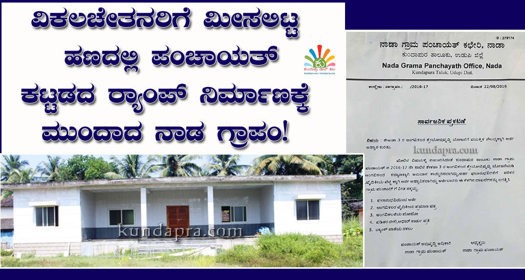 ಕುಂದಾಪುರ: ಗ್ರಾಮ ಪಂಚಾಯತ್ ಮಟ್ಟದಲ್ಲಿ ವಿಕಲಚೇತನರ ಆರೋಗ್ಯ ಹಾಗೂ ಅಗತ್ಯ ಸೌಲಭ್ಯಗಳನ್ನು ಒದಗಿಸಲೆಂದೇ ಮೀಸಲಿಡುವ ಸರಕಾರದ ಶೇ.3% ಅನುದಾನದಲ್ಲಿ ನಾಡ ಗ್ರಾಮ ಪಂಚಾಯತ್ ಕಛೇರಿಯ ರ್ಯಾಂಪ್ ನಿರ್ಮಾಣಕ್ಕೆ ಮುಂದಾಗುವ ಮೂಲಕ ವಿಕಲಚೇತನರ ಹಕ್ಕು ಕಸಿದುಕೊಳ್ಳಲು ಮುಂದಾಗಿರುವುದು ಗ್ರಾಮಸ್ಥರ ಆಕ್ರೋಶಕ್ಕೆ ಕಾರಣವಾಗಿದೆ.