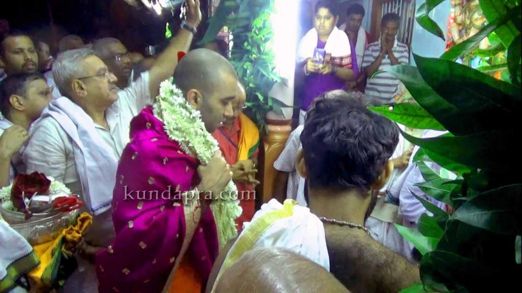 ಸ್ವಾಮೀಜಿಯವರನ್ನು ಪೂರ್ಣ ಕುಂಭ ಸ್ವಾಗತದ ಮೂಲಕ ಬರಮಾಡಿಕೊಳ್ಳಲಾಯಿತು ನಂತರ ದೇವಾಲಯದ ವತಿಯಿಂದ ಪಾದಪೂಜೆ ಸೇವೆ ಸಲ್ಲಿಸಲಾಯಿತು. ಈ ಸಂದರ್ಭದಲ್ಲಿ ದೇವಸ್ಥಾನದ ಮೊಕ್ತೇಸರರು, ಊರ ಪರವೂರ ಸಮಾಜ ಬಾಂಧವರು ಉಪಸ್ಥಿತರಿದ್ದರು. ಸಂಜೆ ಚೈತನ್ಯ  ಕುಲಕರ್ಣಿ ಮುಂಬೈ ಇವರಿಂದ ಭಜನ್ ಸಂಧ್ಯಾ ಕಾರ್ಯಕ್ರಮ ದೇವಸ್ಥಾನದಲ್ಲಿ ನಡೆಯಲಿದೆ.
