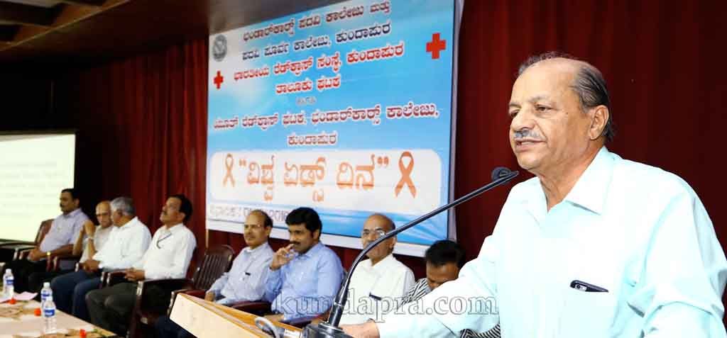 ಕುಂದಾಪುರ: ಇಲ್ಲಿನ ಭಂಡಾರ್ಕಾರ್ಸ್ ಕಾಲೇಜಿನಲ್ಲಿ “ವಿಶ್ವ ಏಡ್ಸ್ ದಿನ”ದ ಪ್ರಯುಕ್ತ ಭಾರತೀಯ ರೆಡ್ಕ್ರಾಸ್ ಸಂಸ್ಥೆ ಕುಂದಾಪುರ ತಾಲೂಕು ಘಟಕ ಮತ್ತು ಯೂತ್ ರೆಡ್ಕ್ರಾಸ್ ಘಟಕಗಳ ಸಂಯುಕ್ತ ಆಶ್ರಯದಲ್ಲಿ ಅರಿವು ಮೂಡಿಸುವ ಕಾರ್ಯಕ್ರಮ ಹಮ್ಮಿಕೊಳ್ಳಲಾಗಿತ್ತು.