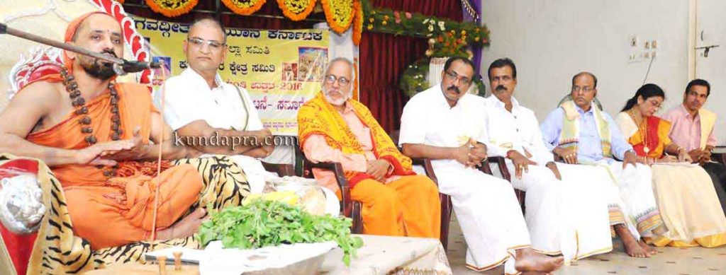 ಅವರು ಸೋಂದಾ ಸ್ವರ್ಣವಲ್ಲೀ ಸಂಸ್ಥಾನದ ಶ್ರೀಮದ್ ಗಂಗಾಧರೇಂದ್ರ ಸರಸ್ವತೀ ಮಹಾಸ್ವಾಮಿಗಳ ಅನುಗ್ರಹದೊಂದಿಗೆ ರಾಜ್ಯಾದ್ಯಂತ ನಡೆಯುತ್ತಿರುವ ಭಗವದ್ಗೀತಾ ಅಭಿಯಾನದ ಪ್ರಯುಕ್ತ ಭಗವದ್ಗೀತಾ ಅಭಿಯಾನ ಕರ್ನಾಟಕ ಉಡುಪಿ ಜಿಲ್ಲಾ ಸಮಿತಿ, ಕುಂದಾಪುರ ಕ್ಷೇತ್ರ ಸಮಿತಿ, ಶ್ರೀ ಸೀತಾರಾಮಚಂದ್ರ ದೇವಸ್ಥಾನ, ಕುಂದಾಪುರದ ಆಶ್ರಯದಲ್ಲಿ ಸಪ್ತಾಹ ಗೀತಾ ಜಯಂತಿ ಉತ್ಸವ-೨೦೧೬ರ ಅಂಗವಾಗಿ ಕುಂದಾಪುರ ಶೈಕ್ಷಣಿಕ ವಲಯದ ಎಲ್ಲಾ ಪ್ರಾಥಮಿಕ, ಹಿರಿಯ ಪ್ರಾಥಮಿಕ, ಪ್ರೌಢ ಶಾಲೆಗಳ ಮತ್ತು ಪದವಿ ಪೂರ್ವ ಕಾಲೇಜುಗಳ ವಿದ್ಯಾರ್ಥಿಗಳಿಗೆ ಹಂಗಳೂರಿನ ಶ್ರೀ ಅನಂತ ಪದ್ಮನಾಭ ಸಭಾಭವನದಲ್ಲಿ ನಡೆದ ಭಗವದ್ಗೀತಾ ಸ್ಪರ್ಧಾ ಕಾರ್ಯಕ್ರಮದ ಸಮಾರೋಪ ಸಮಾರಂಭದಲ್ಲಿ ಆಶೀರ್ವಚನ ನೀಡಿದರು.