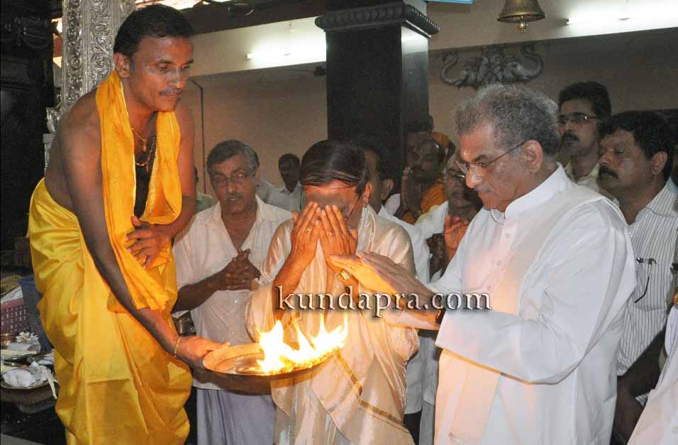 ದೇವಸ್ಥಾನ ಅರ್ಚಕ ರವಿರಾಜ್ ಉಪಾಧ್ಯಾಯ ಪೂಜೆ ನೆರವೇರಿಸಿ, ಡಾ.ವೀರೇಂದ್ರ ಹೆಗ್ಗಡೆ ಅವರಿಗೆ ಪ್ರಸಾದ ವಿತರಣೆ ಮಾಡಿದರು.