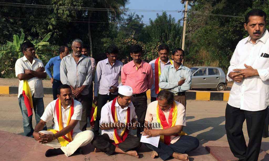 ಕೋಟ: ಉಡುಪಿ ಜಿಲ್ಲೆಯ ರಾಷ್ಟ್ರಿಯ ಹೆದ್ದಾರಿ-೬೬ರಲ್ಲಿ ಅಳವಡಿಸಿರುವ ಕನ್ನಡ ಫಲಕಗಳಲ್ಲಿರುವ ಪದಗಳ ತಪ್ಪು ಬಳಕೆ ಸರಿಪಡಿಸುವಂತೆ ಹಾಗೂ ಸ್ಥಳೀಯರಿಗೆ ಉದ್ಯೋಗ ನೀಡುವಂತೆ ಆಗ್ರಹಿಸಿ ಉಡುಪಿ ಜಿಲ್ಲಾ ಕನ್ನಡ ಸಾಹಿತ್ಯ ಪರಿಷತ್ತಿನ ನೇತೃತ್ವದಲ್ಲಿ ಸಾಸ್ತಾನ ಸುಂಕ ಸಂಗ್ರಹಣಾ ಕೇಂದ್ರದಲ್ಲಿ ಪ್ರತಿಭಟನೆ ನಡೆಯಿತು. ಜಿಲ್ಲಾ ಕನ್ನಡ ಸಾಹಿತ್ಯ ಪರಿಷತ್ ಜಿಲ್ಲಾಧ್ಯಕ್ಷ ನೀಲಾವರ ಸುರೇಂದ್ರ ಅಡಿಗ, ಗೌರವ ಕಾರ್ಯದರ್ಶಿ ಸುಬ್ರಹ್ಮಣ್ಯ ಶೆಟ್ಟಿ, ನರೇಂದ್ರಕುಮಾರ್ ಕೋಟ ಸೇರಿದಂತೆ ಪರಿಷತ್ತಿನ ತಾಲೂಕು, ಹೋಬಳಿ ಪದಾಧಿಕಾರಿಗಳು, ಸಂಘಸಂಸ್ಥೆಗಳ ಪ್ರಮುಖರು ಪ್ರತಿಭಟನೆಗೆ ಸಾಥ್ ನೀಡಿದರು.