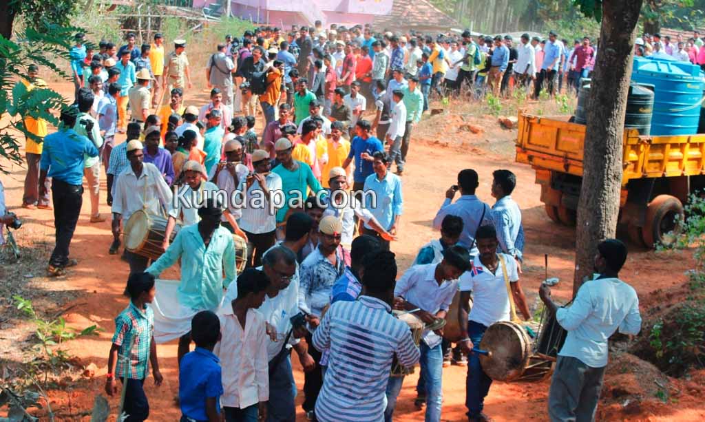 ಸಚಿವರಿಗೆ ಹಾರ ಹಾಕಿ ಕೊರಗರ ಸಾಂಪ್ರದಾಯಿಕ ಶೈಲಿಯಲ್ಲಿ ಸ್ವಾಗತಿಸಲಾಯಿತು.