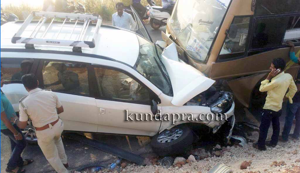 ಕುಂದಾಪುರ: ತಾಲೂಕಿನ ತಲ್ಲೂರು ರಾಜಾಡಿ ಸೇತುವೆ ಬಳಿ ಕಾರು-ಟ್ರ್ಯಾಕ್ಸಿ ಹಾಗೂ ಬಸ್ಸಿನ ನಡುವೆ ನಡೆದ ಸರಣಿ ಅಪಘಾತದಲ್ಲಿ ಕಾರಿನಲ್ಲಿದ್ದ ಕೊಡಗು ಜಿಲ್ಲಾ ಪೊಲೀಸ್ ವರಿಷ್ಠಾಧಿಕಾರಿ ರಾಜೇಂದ್ರ ಪ್ರಸಾದ ಸಣ್ಣಪುಟ್ಟ ಗಾಯಗಳೊಂದಿಗೆ ಪಾರಾಗಿದ್ದಾರೆ.