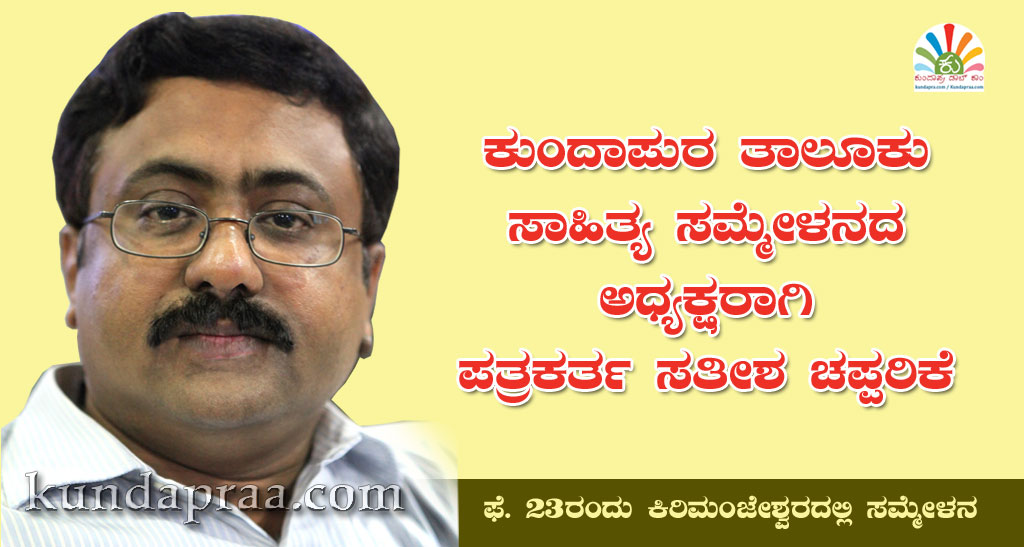 ಕುಂದಾಪುರ: ಕುಂದಾಪುರ ತಾಲೂಕು 15ನೆಯ ಕನ್ನಡ ಸಾಹಿತ್ಯ ಸಮ್ಮೇಳನವು ಫೆ. 23ರಂದು ಕಿರಿಮಂಜೇಶ್ವರದಲ್ಲಿ ನಡೆಯಲಿದ್ದು, ಸಮ್ಮೇಳನಾಧ್ಯಕ್ಷರಾಗಿ ಹಿರಿಯ ಪತ್ರಕರ್ತ, ಅಂಕಣಕಾರ, ಸಾಹಿತಿ ಸತೀಶ ಚಪ್ಪರಿಕೆ ಆಯ್ಕೆಯಾಗಿದ್ದಾರೆ.