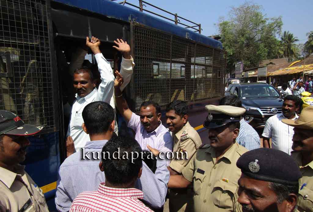 ಪ್ರತಿಭಟನಾಕಾರರು ಕೆಲಹೊತ್ತು ರಸ್ತೆ ತಡೆ ನಡೆಸಿ ಆಕ್ರೋಶ ವ್ಯಕ್ತಪಡಿಸಿದರು. ಬೈಂದೂರು ಪೊಲೀಸರು ಪ್ರತಿಭಟನಾ ನಿರತ ಮುಖಂಡರನ್ನು ಬಂಧಿಸಿ ಸ್ವಲ್ಪ ಹೊತ್ತಿನ ಬಳಿಕ ಬಿಡುಗಡೆಗೊಳಿಸಿದರು.