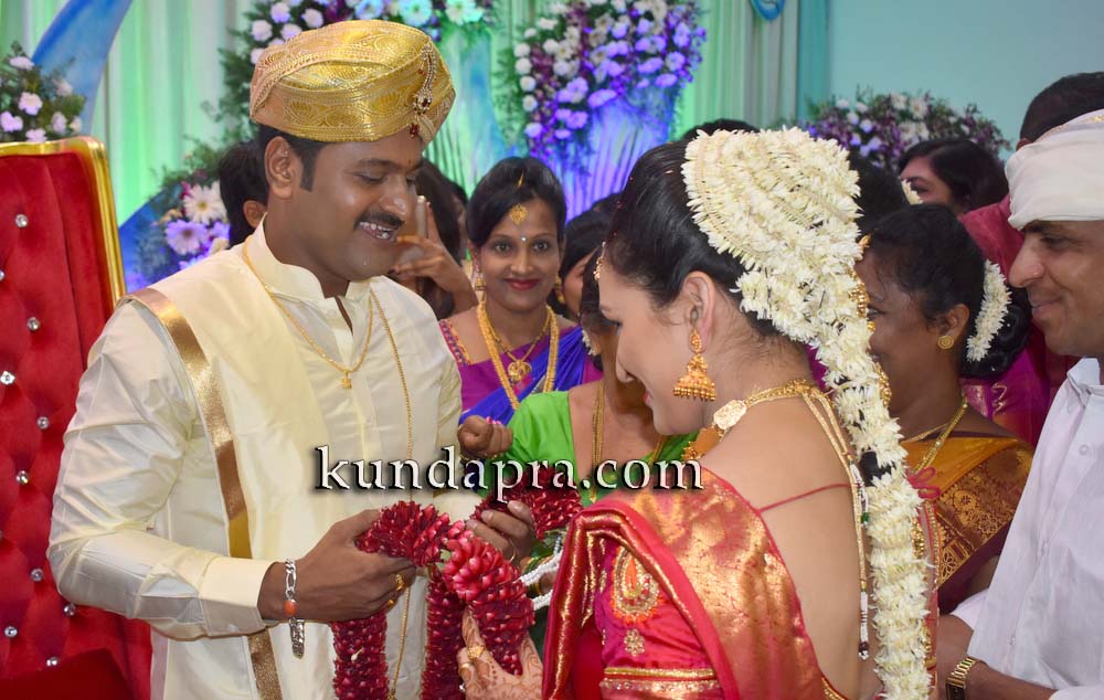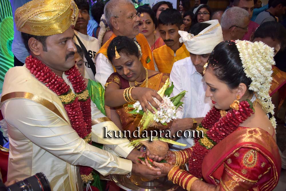 ಕುಂದಾಪುರ: ಕಿರಿಕ್ ಪಾರ್ಟಿ ಚಿತ್ರ ನಿರ್ದೇಶಕ, ಕುಂದಾಪುರ ಕೆರಾಡಿಯ ರಿಶಬ್ ಶೆಟ್ಟಿ ಅವರ ವಿವಾಹವು ಮಂದರ್ತಿ ಮೂಲದ ಪ್ರಗತಿ ಶೆಟ್ಟಿ ಅವರೊಂದಿಗೆ ಕೋಟೇಶ್ವರ ಸಹನಾ ಕನ್ವೇನ್ಯನ್ ಹಾಲ್ನಲ್ಲಿ ನಡೆಯಿತು.