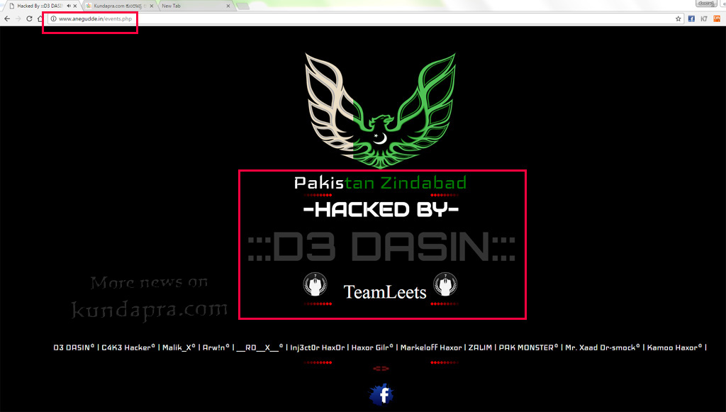 anegudde shri vinayaka temple website hacked and ut pakistana zindabad slogan