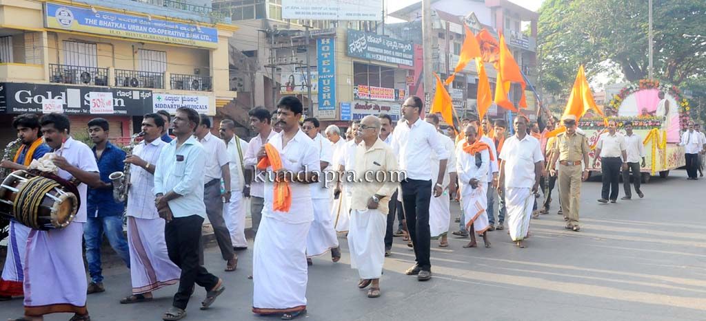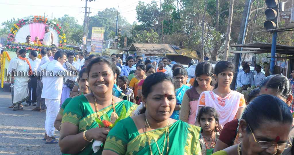 ಪುರಮೆರವಣಿಗೆಯಲ್ಲಿ ಕಳಸ ಹಿಡಿದ ಮಹಿಳೆಯರು ಸೇರಿದಂತೆ ಪಂಚವಾದ್ಯಗಳೊಂದಿಗೆ, ಚಂಡೆ, ಕೀಲುಕುದುರೆ, ತಟ್ಟಿರಾಯ, ಸಾವಿರಾರೂ ಭಕ್ತರು ಪುರಮೆರವಣಿಗೆಗೆ ಸಾಕ್ಷಿಯಾದರು. ತಾಲೂಕು ಗಾಣಿಗ ಸೇವಾ ಸಂಘ ಅಧ್ಯಕ್ಷ ಶ್ರೀನಿವಾಸ ಗಾಣಿಗ, ಕಾರ್ಯದರ್ಶಿ ಶಿವಾನಂದ ರಾವ್, ಕೋಶಾಧಿಕಾರಿ ಶಂಕರನಾರಾಯಣ ಗಾಣಿಗ, ಸಮಾಜದ ಹಿರಿಯ ಮುಖಂಡರಾದ ಸುದೀರ್ ಪಂಡಿತ್, ಗೋಪಾಲ ರಾವ್ ಉಡುಪಿ, ದಾನಿಗಳಾದ ಕೆ.ಎಮ್.ಶೇಖರ್ ಮತ್ತು ಕೆ.ಎಮ್.ಲಕ್ಷ್ಮಣ, ಜಿ.ಆರ್. ಚಂದ್ರಯ್ಯ, ಬಿ.ಎಸ್.ಮಂಜುನಾಥ್, ಗೋಪಾಲ ಚೆಲ್ಲಿಮಕ್ಕಿ, ಜಿಲ್ಲಾ ಯುವ ಸಂಘಟನೆ ಅಧ್ಯಕ್ಷ ದಿನೇಶ್ ಗಾಣಿಗ, ಬೆಂಗಳೂರು, ಮುಂಬೈ, ಶಿವಮೊಗ್ಗ, ಭದ್ರಾವತಿ, ಕುಮಟಾ, ದುಬೈ, ಬಾರಕೂರು, ಮಂಗಳೂರು, ಉಳ್ಳಾಲ ಗಾಣಿಗ ಸೇವಾ ಸಂಘ ಅಧ್ಯಕ್ಷರು ಮತ್ತು ಸರ್ವ ಸದಸ್ಯರು, ಮಹಿಳಾ ಸಂಘಟನೆ, ಎಲ್ಲಾ ಘಟಕಗಳ ಅಧ್ಯಕ್ಷರು ಮತ್ತು ಸರ್ವ ಸದಸ್ಯರು, ಮೊದಲಾದವರೂ ಉಪಸ್ಥಿತರಿದ್ದರು. ಇದೇ ಸಂದರ್ಭದಲ್ಲಿ ರಾತ್ರಿ ಮಠದ ವೃಂದಾವನಗಳ ಸ್ಥಾನ ಶುಧ್ಧಿ, ವಾಸ್ತು ಪೂಜೆ, ವಾಸ್ತು ಹೋಮ, ರಾಕ್ಷೋಘ್ನ ಹೋಮ, ಪುಣ್ಯಾಹವಾಚನ ಸೇರಿದಂತೆ ಅನೇಕ ದಾರ್ಮಿಕ ವಿಧಿ ವಿಧಾನಗಳು ವೇದಮೂರ್ತಿ ಶ್ರೀ ವಿಜಯ ಪೆಜತ್ತಾಯ ಇವರ ನೇತೃತ್ವದಲ್ಲಿ ನಡೆದವು.