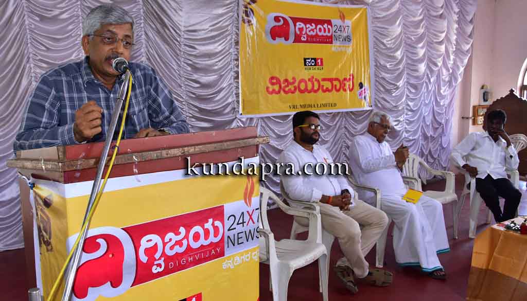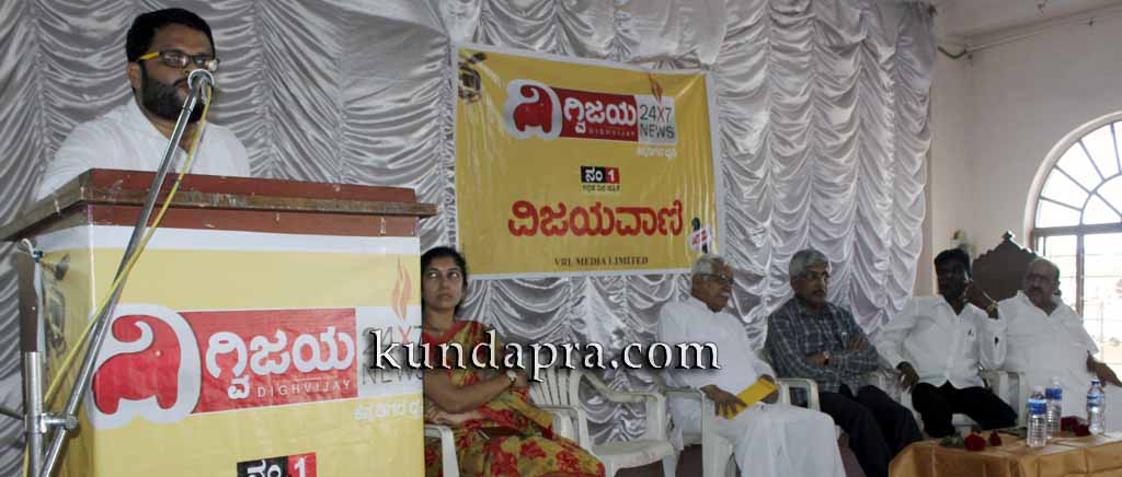 ಕುಂದಾಪುರ ಆರ್.ಎನ್. ಶೆಟ್ಟಿ ಸಭಾಭವನ ಮಿನಿ ಸಭಾಂಗಣದಲ್ಲಿ ನಡೆದ ದಿಗ್ವಿಜಯ 24×7 ಚಾನೆಲ್ ಕಚೇರಿ ಉದ್ಘಾಟಿಸಿ, ಮಾಧ್ಯಮ ಕೇತ್ರದಿಂದ ಆರಂಭವಾದ ವಿಜಯ ಸಂಕೇಶ್ವರ ಅವರ ವಿಜಯಯಾತ್ರೆ ದೃಶ್ಯ ಮಾಧ್ಯಮಕ್ಕೂ ವಿಸ್ತರಿಸಿದ್ದು, ದಿಗ್ವಿಜಯ ಟಿವಿ ಚಾಲನ್ ದಶದಿಕ್ಕುಗಳಲ್ಲಿ ದಿಗ್ವಿಜಯದ ದುಂದುಬಿ ಮೊಳಗಿಸಲಿ ಎಂದು ಆಶಿಸಿದರು.