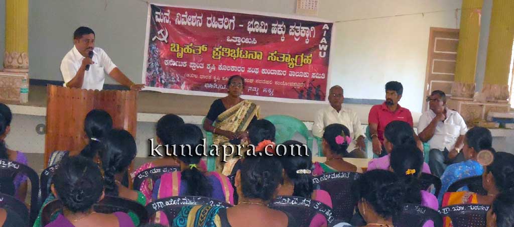 ಕರ್ನಾಟಕ ಪ್ರಾಂತ ಕೃಷಿ ಕೂಲಿಕಾರರ ಸಂಘದ ಜಿಲ್ಲಾ ಪ್ರಧಾನ ಕಾರ್ಯದರ್ಶಿ ವೆಂಕಟೇಶ ಕೋಣಿ ನಿವೇಶನ ರಹಿತರ ಸಮಾವೇಶವನ್ನುದ್ದೇಶಿಸಿ ಮಾತನಾಡುತ್ತಾ- ಈಗಾಗಲೇ ಕುಂದಾಪುರ ತಹಶೀಲ್ದಾರ್ ಕಛೇರಿ ಕಂದಾಯ ಇಲಾಖೆಯಿಂದ – ಸರಕಾರಿ ಸ್ಥಳವನ್ನು ಅತಿಕ್ರಮಣ ಮಾಡಿಕೊಂಡಿರುವ ೨೨೪ ಮಂದಿ ಹೆಸರು ವಿಳಾಸವುಳ್ಳ ಕ್ರಿಯಾಯೋಜನೆ ಪಟ್ಟಿಯಂತೆ ಒಟ್ಟು ಸರಕಾರಿ ಸ್ಥಳ ವಿಸ್ತೀರ್ಣ ೩೬೯.೧೮ ಎಕ್ರೆಯನ್ನು ಕೂಡಲೇ ತೆರವುಗೊಳಿಸಿ ನಿವೇಶನ ರಹಿತರಿಗೆ ಭೂಮಿ ಹಕ್ಕು ಪತ್ರ ಮಂಜೂರು ಮಾಡಲು – ಸರಕಾರ ಕ್ರಮವಹಿಸಬೇಕು ಎಂದು ಸರಕಾರವನ್ನು ಒತ್ತಾಯಿಸಿದರು.