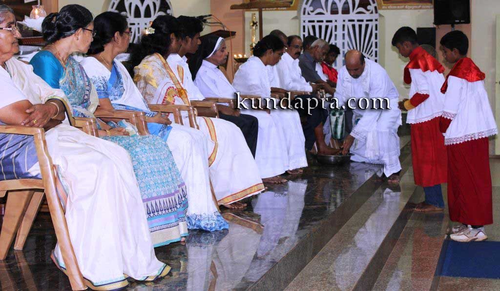 ಕುಂದಾಪುರ: ಇದು ಎಸುವಿನ ಕೊನೆಯ ಭೋಜನದ ದಿನವೂ ಆಗಿದೆ ಅಂದು ಎಸು ಮೂರು ಸಂಸ್ಕಾರ ನೇರವೆರಿಸಿದರು, ಒಂದು ರೊಟ್ಟಿಯ (ಪ್ರಸಾದ) ಸಂಸ್ಕಾರ, ಈ ರೊಟ್ಟಿಯ ಮೂಲಕ ತಾನು ನಮ್ಮ ಜೊತೆಗಿರುತ್ತೇನೆಂದು ವಾಗ್ದಾನ ಮಾಡಿದ ದೀನ, ಎರಡನೆಯದು ತನ್ನ ಶಿಸ್ಯರು, ಅನುಯಾಯಿಗಳು ತಾವು ಸೇವೆ ಮಾಡಿಕೊಳ್ಳುವುದಲ್ಲಾ, ಇತರರ ಸೇವೆ ಮಾಡಬೇಕೆಂದು ಭೋದನೆ ಮಾಡಿದ ದಿನ, ಮೂರನೇಯದು ತನ್ನ ಶಿಸ್ಯರನ್ನು ಯಾಜಕರನ್ನಾಗಿ ಮಾಡಿ ಧರ್ಮಗುರುಗಳ ಸಂಸ್ಕಾರ ಆರಂಭಿಸಿದ ದೀನ, ’ನಾನು ಸೇವೆ ಪಡೆಯಲು ಬಂದಿದ್ದಲ್ಲಾ, ನಾನು ಇತರರ ಸೇವೆ ಮಾಡಲು ಬಂದಿದ್ದು’ ಅಂತಾ ಏಸು ನಮಗೆ ಭೋದನೆ ಮಾಡಿದ್ದಾರೆ, ಅದರಂತೆ ಎಸುವಿನ ಹಿಂಬಾಲಾಕರಾದ ನಾವು ದೀನ ದಲಿತರ, ಅಗತ್ಯ ಇರುವರ ಸೇವೆ ಮಾಡಬೇಕೆನ್ನುತ್ತಾ’ ಕುಂದಾಪುರ ಇಗರ್ಜಿಯ ಪ್ರಧಾನ ಗುರು ವಂ.ಅನಿಲ್ ಡಿಸೋಜಾ ಆರಿಸಲ್ಪಟ್ಟ ಸದಸ್ಯರ ಪಾದ ತೊಳೆಯುವ ಸಂಪ್ರದಾಯವನ್ನು ನೇಡೆಸಿಕೊಟ್ಟರು. ಸಹಾಯಕ ಧರ್ಮಗುರು ವಂ. ಜೆರಾಲ್ಡ್ ಸಂದೀಪ್ ಡಿಮೆಲ್ಲೊ ಸಹವರ್ತಿಯಾಗಿ ಈ ಧಾರ್ಮಿಕ ಕ್ರಿಯೆಗಳನ್ನು ನೆಡೆಸಿಕೊಟ್ಟರು