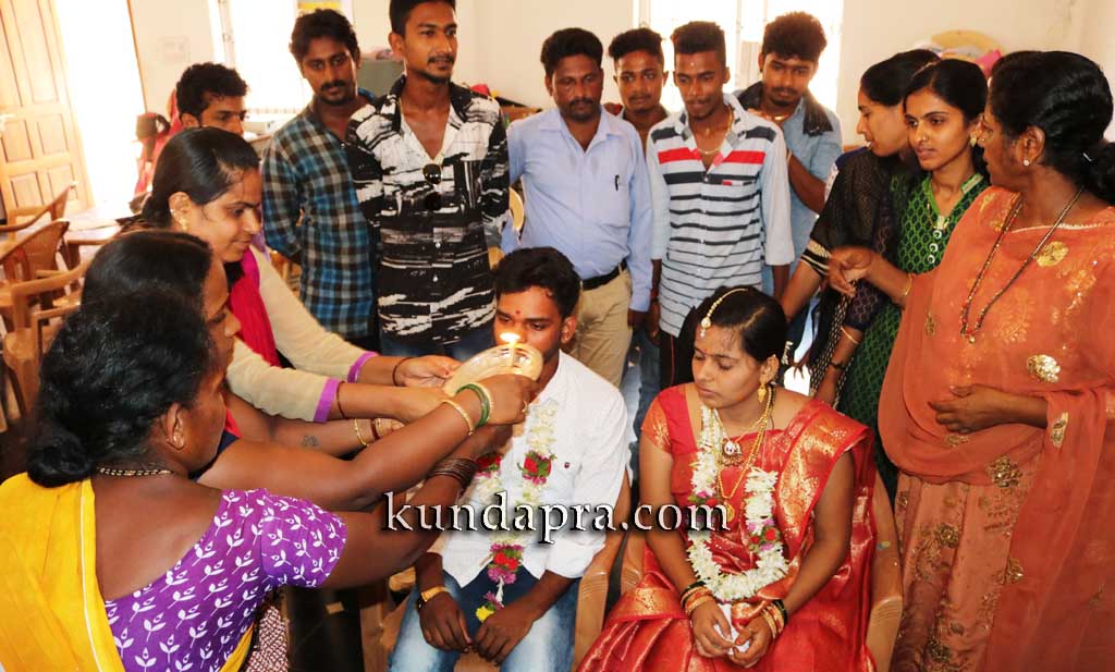 ಕುಂದಾಪುರ ಮೂಕಾಂಬಿಕಾ ಮಹಿಳಾ ಮಂಡಳಿ ಅಧ್ಯಕ್ಷೆ ರಾಧಾದಾಸ್ ಪೌರೋಹಿತ್ಯದಲ್ಲಿ ಹುಡುಗನ ತಂದೆ ತಾಯಿ, ಸಂಬಂಧಿಕರು ಹಾಗೂ ಸ್ನೇಹಿತರ ಸಮ್ಮುಖದಲ್ಲಿ ಹಾರ ಬದಲಾಯಿಸಿ, ತಾಳಿಕಟ್ಟಿ ಸರಳ ವಿವಾಹ ಮೂಲಕ ಗೃಹಸ್ಥಾಶ್ರಮಕ್ಕೆ ಕಾಲಿಟ್ಟರು.
