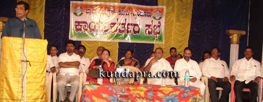 ಉಪ್ಪುಂದದ ಶಂಕರ ಕಲಾಮಂದಿರದಲ್ಲಿ ನಡೆದ ಬೈಂದೂರು ಬ್ಲಾಕ್ ಕಾಂಗ್ರೆಸ್ ಕಾರ್ಯಕರ್ತರ ಸಭೆಯಲ್ಲಿ ಅವರು ಮಾತನಾಡಿದರು. ಬೂತ್ ಮಟ್ಟದಲ್ಲಿ ಪಕ್ಷ ಸದಸ್ಯತ್ವ ಅಭಿಯಾನ ನಡೆಸಬೇಕು. ಸದಸ್ಯರಲ್ಲಿ ಅರ್ಧಕ್ಕೆ ಕಡಿಮೆಯಿರದಷ್ಟು ಮಹಿಳೆಯರು ಇರುವಂತೆ, ಗಣನೀಯ ಸಂಖ್ಯೆಯಲ್ಲಿ ಯುವಜನರು ಇರುವಂತೆ ನೋಡಿಕೊಳ್ಳಬೇಕು. ಅರ್ಹರನ್ನು ಮತದಾರ ಪಟ್ಟಿಗೆ ಸೇರಿಸಬೇಕು. ಅದರ ಜತೆಗೆ ಬೂತ್ ಸಮಿತಿ ಬಡತನ ನಿವಾರಣೆಯ ನಿಟ್ಟಿನಲ್ಲಿ ರಾಜ್ಯ ಸರ್ಕಾರ ಅನುಷ್ಠಾನಿಸುತ್ತಿರುವ ಅನ್ನಭಾಗ್ಯ, ಕ್ಷೀರಭಾಗ್ಯ, ವಸತಿ ಯೋಜನೆಯಂತಹ ಜನಪರ ಕಾರ್ಯಕ್ರಮಗಳು ಅರ್ಹರಿಗೆ ತಲಪುವುದನ್ನು ಖಾತರಿಪಡಿಸುವ ಹೊಣೆ ನಿರ್ವಹಿಸಬೇಕು ಎಂದು ಅವರು ಹೇಳಿದರು.