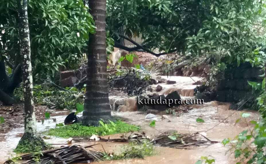 ಬೈಂದೂರು: ಬೈಂದೂರು ಪೇಟೆಯ ಸಮೀಪ ರಾಷ್ಟ್ರೀಯ ಹೆದ್ದಾರಿ ಕಾಮಗಾರಿ ನಡೆಸುತ್ತಿರುವ ಐಆರ್ಬಿ ಕಂಪೆನಿಯ ಅಸಮರ್ಪಕ ಕಾಮಗಾರಿಯಿಂದಾಗಿ ಇಲ್ಲಿನ ಇಲ್ಲಿನ ನಿವಾಸಿಯೋರ್ವರ ಮನೆಯ ಆವರಣ ಹಾಗೂ ತೋಟಕ್ಕೆ ಜೇಡಿ ಮಣ್ಣು ಮಿಶ್ರಿತ ನೀರು ನುಗ್ಗಿ ಹಾನಿ ಉಂಟು ಮಾಡಿದೆ.