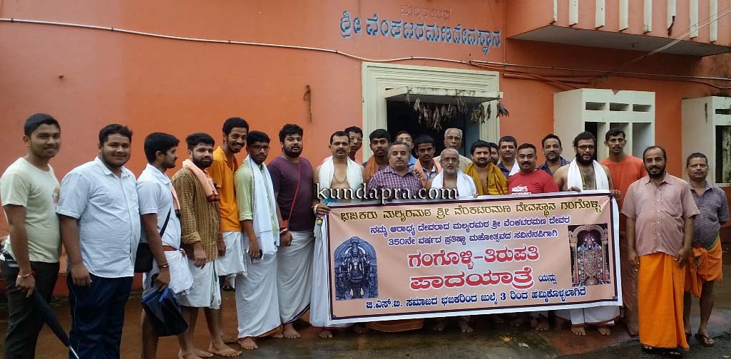 ಗಂಗೊಳ್ಳಿ ಗ್ರಾಪಂ ಸದಸ್ಯ ಬಿ.ಗಣೇಶ ಶೆಣೈ ಮತ್ತು ಕೃಷ್ಣ ಪಡಿಯಾರ್ ನೇತೃತ್ವದಲ್ಲಿ ನವೀನ ಭಟ್ ಹಟ್ಟಿಯಂಗಡಿ, ಗಣೇಶ ಕಿಣಿ, ವಿಜೇಶ ಮಲ್ಯ, ವಿಜೇಶ ಪಡಿಯಾರ್, ವಿಘ್ನೇಶ ಪಡಿಯಾರ್, ಕೆ.ಹರೀಶ ನಾಯಕ್, ಜಿ.ವಿಜೇಂದ್ರ ನಾಯಕ್, ಜಿ.ವಿಷ್ಣುದಾಸ ಭಟ್, ಶ್ರೀಧರ ಪ್ರಭು ಕುಂದಾಪುರ ಇವರು ಪಾದಯಾತ್ರೆ ಕೈಗೊಂಡಿದ್ದು, ಜುಲೈ ೧೭ರಂದು ತಿರುಪತಿ ತಲುಪಲಿದ್ದಾರೆ.