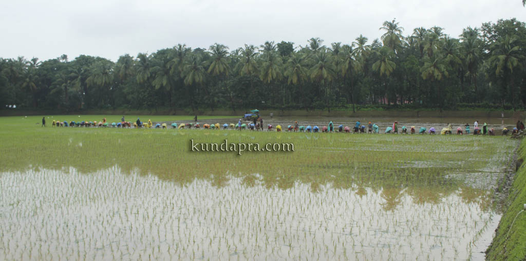 ಬೈಂದೂರು: ನೂರಾರು ವರ್ಷಗಳ ಇತಿಹಾಸ ಹೊಂದಿರುವ, ಐತಿಹಾಸಿಕ ಕಂಬಳ ನಡೆಯುವ ತಗ್ಗರ್ಸೆ ಕಂಠದಮನೆ ಕುಟುಂಬಸ್ಥರ ಕಂಬಳಗದ್ದೆಯಲ್ಲಿ ಪ್ರತಿವರ್ಷದಂತೆ ಸಾಂಪ್ರದಾಯಿಕ ಕೃಷಿ ಚಟುವಟಿಕೆಗಳು ಆರಂಭಗೊಂಡಿದ್ದು, ನಾಟಿ ಕಾರ್ಯ ಪೂರ್ಣಗೊಂಡಿದೆ. ಕಂಠದಮನೆಯ ಕುಂಟುಂಬಿಕರಲ್ಲಿ ಹಿರಿಯವರಾದ ಟಿ. ನಾರಾಯಣ ಹೆಗ್ಡೆ ಅವರ ಮಾರ್ಗದರ್ಶನಲ್ಲಿ ನೂರಾರು ಮಂದಿ ಕೃಷಿ ಕಾರ್ಮಿಕರಿಂದ ವಾಡಿಕೆಯಂತೆ ಒಂದೇ ದಿನದಲ್ಲಿ ನಾಟಿ ಕಾರ್ಯ ಪೂರ್ಣಗೊಂಡಿದೆ. ಸಾಂಪ್ರದಾಯಿಕ ಕಾರ್ಯ ಚಾಲನೆ ನೀಡುವ ವೇಳೆಗೆ ಜಿಪಂ ಸದಸ್ಯ ಬಾಬು ಶೆಟ್ಟಿ ತಗ್ಗರ್ಸೆ, ಗ್ರಾಪಂ ಸದಸ್ಯ ಕಂಠದಮನೆ ಬಾಲಕೃಷ್ಣ ಹೆಗ್ಡೆ, ಕಂಠದಮನೆ ಸುಬಾಶ್ಚಂದ್ರ ಶೆಟ್ಟಿ, ಉದಯ ಹೆಗ್ಡೆ ಮೊದಲಾದವರು ಉಪಸ್ಥಿತರಿದ್ದರು.