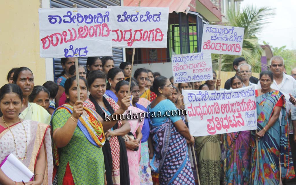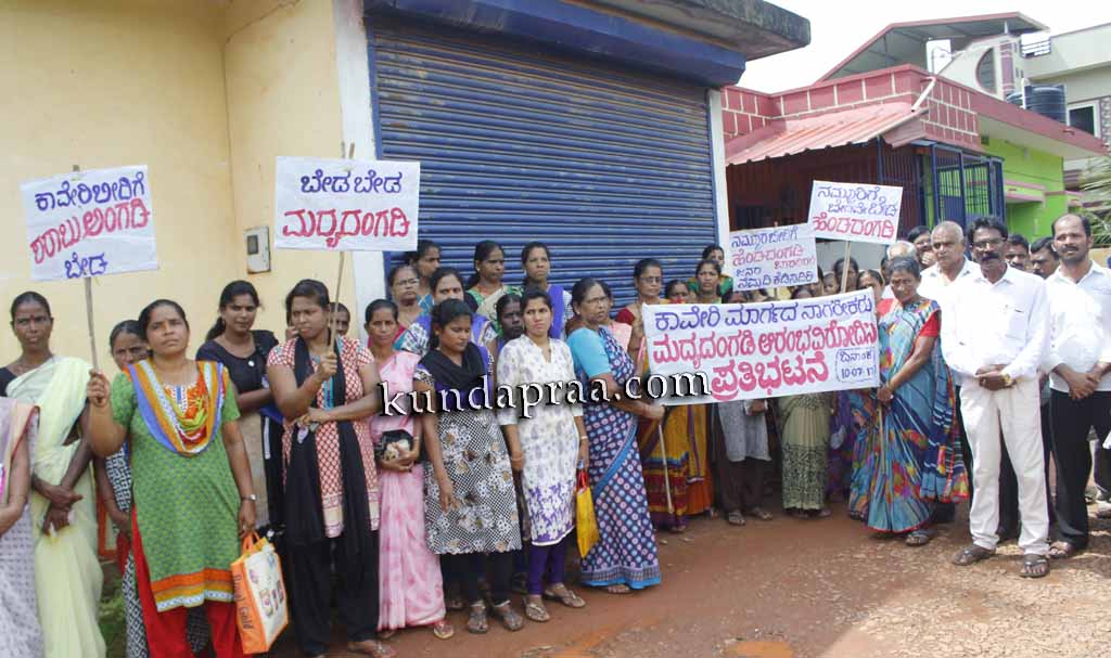 ಪ್ರತಿಭಟನೆಯ ನೇತೃತ್ವ ವಹಿಸಿದ್ದ ಕಾವೇರಿ ಮಾರ್ಗದ ನಿವಾಸಿ ನಾಗರಾಜ ಗಾಣಿಗ ಬಂಕೇಶ್ವರ ಮಾತನಾಡಿ ಕಾವೇರಿ ಮಾರ್ಗದಲ್ಲಿ ಎಲ್ಲಾ ಸಮುದಾಯದವರೂ ಈವರೆಗೆ ಶಾಂತಿ ಸೌಹಾರ್ದದಿಂದ ಬದುಕುತ್ತಿದ್ದಾರೆ. ಪ್ರತಿನಿತ್ಯವೂ ಹತ್ತಾರು ಮಕ್ಕಳು, ಮಹಿಳೆಯರು ಇದೇ ಮಾರ್ಗವಾಗಿ ಸಂಚರಿಸುತ್ತಾರೆ. ಸಮೀಪದಲ್ಲಿ ದೇವಸ್ಥಾನ, ಅಂಗನವಾಡಿ ಕೇಂದ್ರ ಹಾಗೂ ಹತ್ತಾರು ಮನೆಗಳಿದ್ದು ಇಲ್ಲಿಯೇ ಮಧ್ಯದಂಗಡಿ ತೆರೆಯುವುದು ಸೂಕ್ತವಲ್ಲ. ಕಿರಿದಾದ ರಸ್ತೆಗೆ ತಾಕಿಕೊಂಡಿರುವ ಕಟ್ಟಡದಲ್ಲಿ ಅಂಗಡಿ ತೆರೆದರೆ ಈ ಮಾರ್ಗದಲ್ಲಿ ಸಂಚರಿಸುವುದೇ ಕಷ್ಟವಾಗಲಿದೆ. ತಹಶೀಲ್ದಾರರು, ಸ್ಥಳೀಯ ಪಂಚಾಯತ್ ಹಾಗೂ ಅಬಕಾರಿ ಇಲಾಖೆ ಈ ಬಗ್ಗೆ ಕೂಡಲೇ ಗಮನ ಹರಿಸಿ ಮಧ್ಯದಂಗಡಿ ತೆರೆಯಲು ಅನುಮತಿ ನೀಡಬಾರದು ಎಂದು ಆಗ್ರಹಿಸಿದರು. ಕುಂದಾಪ್ರ ಡಾಟ್ ಕಾಂ.