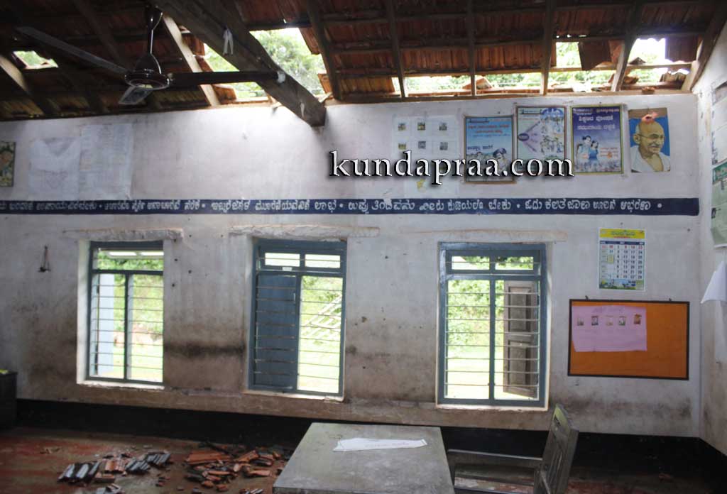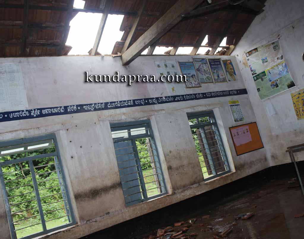 ಬೈಂದೂರು: ಸಂಪೂರ್ಣ ಶಿಥಿಲಗೊಂಡ ಹಳೆಯ ಅಪಾಯಕಾರಿ ಶಾಲಾ ಕಟ್ಟಡದಲ್ಲಿಯೇ ಆಟ ಪಾಠ. ಮಳೆಗಾಲದಲ್ಲಿ ನೀರಿನ ಪಸೆ ಏಳುವ ಕೋಣೆಯೊಳಕ್ಕೆ ಕುಳಿತುಕೊಂಡ ಮಕ್ಕಳಿಗೆ ಶೀತ ಜ್ವರ ತಪ್ಪಿದ್ದಲ್ಲ. ನಿಂತುಕೊಂಡೆ ಮಧ್ಯಾಹ್ನದ ಊಟ ಸೇವಿಸಬೇಕಾದ ದುಸ್ಥಿತಿ. ಪಕ್ಕದ ದೇವಸ್ಥಾನವೊಂದೇ ತಾತ್ಕಾಲಿಕ ಆಸರೆ. ಇಷ್ಟನ್ನೂ ಸಹಿಸಿಕೊಂಡು ಮಕ್ಕಳನ್ನು ಧೈರ್ಯಮಾಡಿ ಶಾಲೆಗೆ ಕಳುಹಿಸಿದ್ದ ಪೋಷಕರಿಗೆ ಈಗ ಮತ್ತೊಂದು ಆಘಾತ ಎದುರಾಗಿದೆ. ಶಾಲೆಯ ಮೇಲ್ಛಾವಣಿ ಮತ್ತಷ್ಟು ಶಿಥಿಲಗೊಂಡು ಹೆಂಚುಗಳು ಗಾಳಿ ಮಳೆಗೆ ಉದುರಿ ಬೀಳುತ್ತಿದ್ದು ಮಕ್ಕಳ ಜೀವಕ್ಕೆ ಹೊಣೆಯಾರು ಎಂದು ಆತಂಕಗೊಂಡಿದ್ದಾರೆ. ಉತ್ತರಿಸಬೇಕಾದ ಅಧಿಕಾರಿಗಳು ಮಾತ್ರ ಉಡಾಫೆಯ ಉತ್ತರ ನೀಡಿ ಜಾರಿಕೊಳ್ಳುತ್ತಿದ್ದಾರೆ.