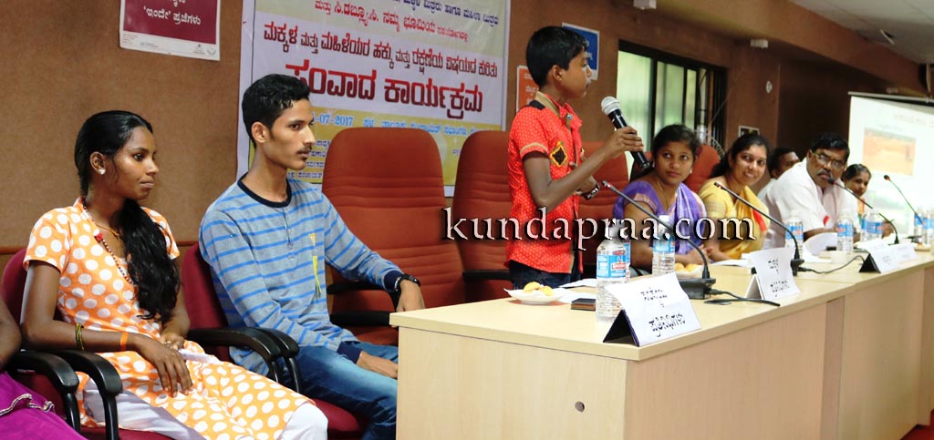 ಇದು ಜಿಲ್ಲಾಡಳಿತ, ತಾಲೂಕ್ ಪಂಚಾಯತ್, ಸಿಡಬ್ಲ್ಯೂಸಿ ಸಂಸ್ಥೆ, ಮಕ್ಕಳ ಸಂಘ, ಮಕ್ಕಳ ಹಾಗೂ ಮಹಿಳಾ ಮಿತ್ರರು ಆಶ್ರಯದಲ್ಲಿ ಕುಂದಾಪುರ ತಾಲೂಕು ಪಂಚಾಯತ್ ಸಭಾಂಗಣದಲ್ಲಿ ಮಕ್ಕಳು ಮತ್ತು ಮಹಿಳಾ ಹಕ್ಕು ಹಾಗೂ ರಕ್ಷಣೆ ಕುರಿತು ನಡೆದ ಸಂವಹನದಲ್ಲಿ ಮಕ್ಕಳು ಸಮಸ್ಯೆಗಳ ಅನಾವರಣ ಮಾಡಿದ ಪರಿ.
