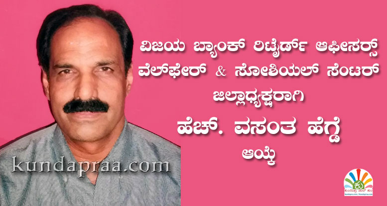 ವಿಜಯ ಬ್ಯಾಂಕ್ ನಿವೃತ್ತ ಅಧಿಕಾರಿಗಳ ಸಂಘದ ಜಿಲ್ಲಾಧ್ಯಕ್ಷರಾಗಿ ಹೆಚ್. ವಸಂತ ಹೆಗ್ಡೆ ಆಯ್ಕೆ
