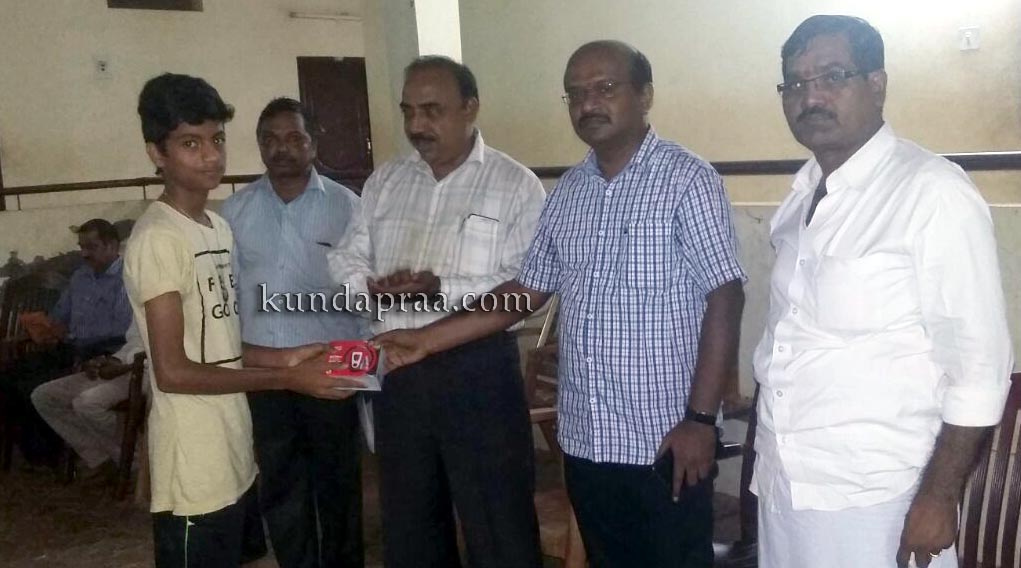 ಸುಪರ್ಣಾ ಸೇವಾ ಟ್ರಸ್ಟ್ನ ಮ್ಯಾನೆಜಿಂಗ್ ಟ್ರಸ್ಟಿ ಕೊಲ್ಲೂರು ರಮೇಶ್ ಗಾಣಿಗ ಕೊಡುಗೆಯಾಗಿ ನೀಡಿದ ಕಿಟ್ನ್ನು ಶ್ರೀ ಮೂಕಾಂಬಿಕಾ ದೇವಳದ ಕಾರ್ಯನಿರ್ವಹಣಾಧಿಕಾರಿ ಜನಾರ್ಧನ ಅವರು ವಿದ್ಯಾರ್ಥಿಗಳಿಗೆ ಹಸ್ತಾಂತರಿಸಿದರು.