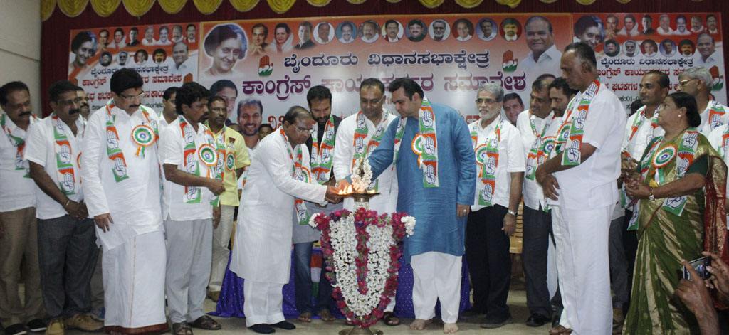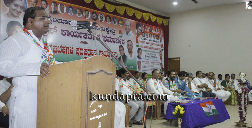 ಅವರು ತ್ರಾಸಿ ಅಣ್ಣಪ್ಪಯ್ಯ ಸಭಾಭವನದಲ್ಲಿ ನಡೆದ ಬೈಂದೂರು ವಿಧಾನಸಭಾ ಕ್ಷೇತ್ರ ವ್ಯಾಪ್ತಿಯ ಕಾಂಗ್ರೆಸ್ ಕಾರ್ಯಕರ್ತರ ಸಮಾವೇಶ ಹಾಗೂ ವಿವಿಧ ಘಟಕಗಳ ಪದಪ್ರಧಾನ ಕಾರ್ಯಕ್ರಮವನ್ನು ಉದ್ಘಾಟಿಸಿ ಮಾತನಾಡಿ ಕೇಂದ್ರದಲ್ಲಿ ನರೇಂದ್ರ ಮೋದಿ ಸರಕಾರ ಆಡಳಿತಕ್ಕೆ ಬಂದಾಗಿನಿಂದಲೂ ಸುಳ್ಳಿನ ಮೂಲಕ ಜನರ ದಿಕ್ಕು ತಪ್ಪಿಸುವ ಕೆಲಸ ಮಾಡುತಿದ್ದಾರೆ. ಅವರು ಆಡಳಿತಕ್ಕೆ ಬರುವ ಮೊದಲು ನೀಡಿದ ಭರವಸೆಗಳನ್ನು ಈಡೇರಿಸದೇ ಮೂರು ವರ್ಷ ಕಳೆದಿದ್ದಾರೆ. ಆದರೆ ರಾಜ್ಯ ಕಾಂಗ್ರೆಸ್ ಸರಕಾರ ಪ್ರನಾಳಿಕೆಯಲ್ಲಿ ತಿಳಿಸಿದ್ದ ಶೇ.೯೫ರಷ್ಟು ಭರವಸೆಗಳನ್ನು ಈಡೇರಿಸಿದೆ. ರಾಜ್ಯ ಸರಕಾರದ ಯೋಜನೆಗಳನ್ನು ಮುಂದಿಟ್ಟುಕೊಂಡು ಕಾರ್ಯಕರ್ತರು ಜನರಿಗೆ ಮನವರಿಗೆ ಮಾಡಬೇಕಿದೆ. ಜನರು ಮುಂದಿನದ್ದನ್ನು ನಿರ್ಧರಿಸುತ್ತಾರೆ ಎಂದರು. ಕುಂದಾಪ್ರ ಡಾಟ್ ಕಾಂ.