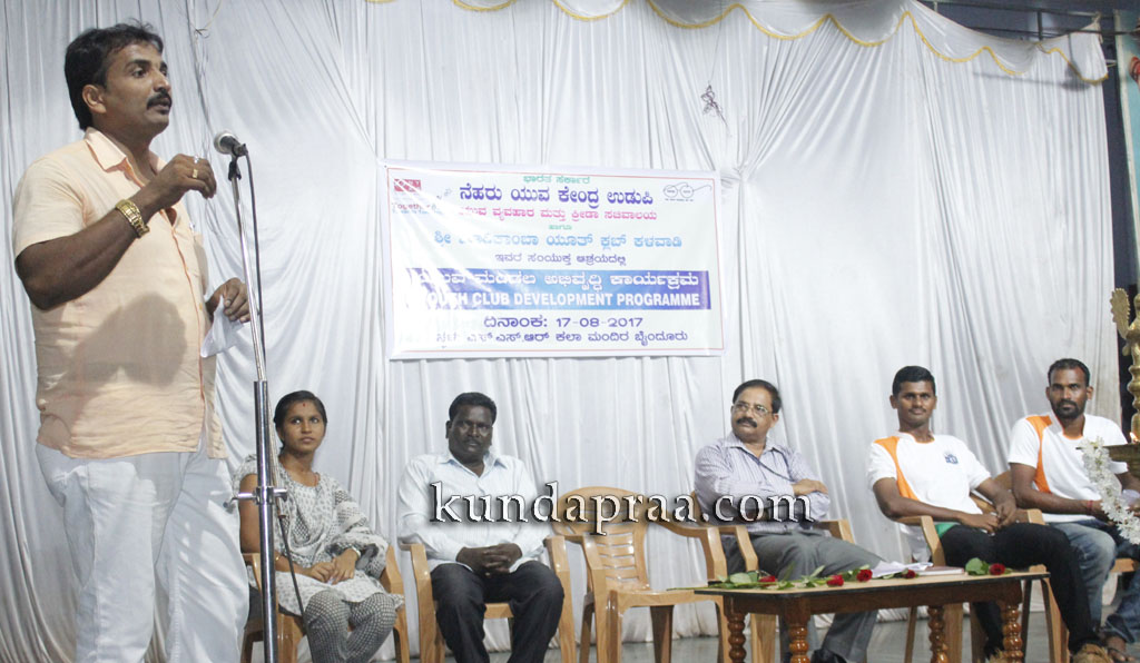 ಅವರು ಬೈಂದೂರು ಎಸ್‌ಆರ್‌ಆರ್ ಕಲಾಮಂದಿರದಲ್ಲಿ ಜರುಗಿದ ನೆಹರು ಯುವ ಕೇಂದ್ರ ಉಡುಪಿ ಯುವ ವ್ಯವಹಾರ ಮತ್ತು ಕ್ರೀಡಾ ಸಚಿವಾಲಯ ಹಾಗೂ ಕಳವಾಡಿ ಮಾರಿಕಾಂಬ ಯುತ್ ಕ್ಲಬ್ ಸಂಯುಕ್ತಾಶ್ರಯದಲ್ಲಿ ಜರುಗಿದ ಯುವ ಮಂಡಲ ಅಭಿವೃದ್ಧಿ ಕಾರ್ಯಕ್ರಮದಲ್ಲಿ ಮಾತನಾಡಿದರು.