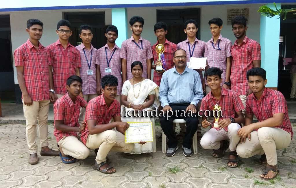 ಗಂಗೊಳ್ಳಿ : ಶಿರೂರಿನ ಗ್ರೀನ್ ವ್ಯಾಲಿ ಪದವಿ ಪೂರ್ವ ಕಾಲೇಜಿನಲ್ಲಿ ನಡೆದ ಕುಂದಾಪುರ ತಾಲೂಕು ಪದವಿ ಪೂರ್ವ ಕಾಲೇಜು ವಿದ್ಯಾರ್ಥಿಗಳ ಫುಟ್ ಬಾಲ್ ಪಂದ್ಯಾಟದಲ್ಲಿ ದ್ವಿತೀಯ ಸ್ಥಾನ ಗಳಿಸಿದ ಗಂಗೊಳ್ಳಿಯ ಸರಸ್ವತಿ ವಿದ್ಯಾಲಯ ಪದವಿ ಪೂರ್ವ ಕಾಲೇಜಿನ ವಿದ್ಯಾರ್ಥಿಗಳು ತಾವು ಪಡೆದ ಟ್ರೋಫಿಯೊಂದಿಗೆ. ಕಾಲೇಜಿನ ಪ್ರಾಂಶುಪಾಲೆ ಕವಿತಾ ಎಮ್ ಸಿ ಮತ್ತು ದೈಹಿಕ ಶಿಕ್ಷಣ ನಿರ್ದೇಶಕ ನಾಗರಾಜ ಶೆಟ್ಟಿ ಉಪಸ್ಥಿತರಿದ್ದಾರೆ. ಇಲ್ಲಿನ ಐದು ವಿದ್ಯಾರ್ಥಿಗಳು ಜಿಲ್ಲಾ ಮಟ್ಟಕ್ಕೆ ಆಯ್ಕೆಯಾಗಿದ್ದಾರೆ.