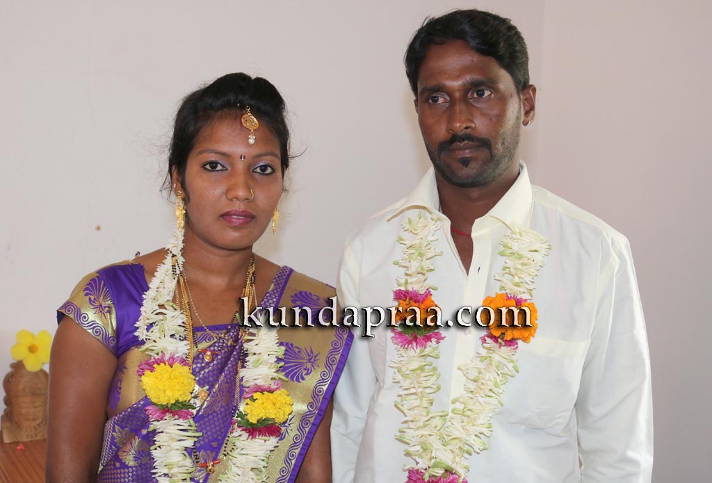 ತಾಲೂಕಿನ ತ್ರಾಸಿ ಗ್ರಾಮದ ನಿವಾಸಿ ಮಣಿಕಂಠ ಎಂಬವರ ಪುತ್ರ ರಾಘವೇಂದ್ರ ಪೂಜಾರಿ (೨೯) ಹಾಗೂ ನೆರೆಮನೆ ನಿವಾಸಿ ಲಕ್ಷ್ಮಣ್ ಎಂಬವರ ಪುತ್ರಿ ವಸಂತಿ ಖಾರ್ವಿ (೨೪) ಗೃಹಸ್ಥಾಶ್ರಮಕ್ಕೆ ಕಾಲಿಟ್ಟ ಜೋಡಿ. ರಾಘವೇಂದ್ರ ಮೀನುಗಾರಿಕಾ ವೃತ್ತಿ ಮಾಡಿಕೊಂಡಿದ್ದು, ವಸಂತಿ ಕುಂದಾಪುರ ಪುಸ್ತಕ ಮಳಿಗೆಯಲ್ಲಿ ಕೆಲಸದಲ್ಲಿದ್ದರು. ಇಬ್ಬರೂ ಕಳೆದ ೨೦ ವರ್ಷದಿಂದ ಒಡನಾಡಿಗಳಾಗಿದ್ದು, ಎರಡು ವರ್ಷದಿಂದ ಇಬ್ಬರಲ್ಲಿ ಪ್ರೇಮಾಂಕುರವಾಗಿತ್ತು. ಆರು ತಿಂಗಳ ಹಿಂದೆ ಇಬ್ಬರೂ ಮದುವೆ ನಿರ್ಧಾರಕ್ಕೆ ಬಂದಿದ್ದರು. ಇಬ್ಬರೂ ಬೇರೆ ಬೇರೆ ಜಾತಿಗೆ ಸೇರಿದ್ದರಿಂದ ಎರಡೂ ಮನೆಯವರು ಮದುವೆ ವಿರೋಧಿಸಿದ್ದರು.