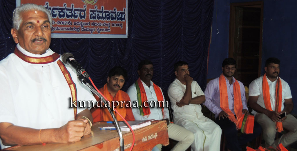 ಅವರು ಬೈಂದೂರು ಶ್ರೀ ಸೀತಾರಾಮಚಂದ್ರ ಸಭಾಭವನದಲ್ಲಿ ಜರುಗಿದ ವಿಶ್ವ ಹಿಂದೂ ಪರಿಷತ್ – ಬಜರಂಗದಳ ಬೈಂದೂರು ಪ್ರಖಂಡದ ಕಾರ್ಯಕರ್ತರ ಸಮಾವೇಶದಲ್ಲಿ ದಿಕ್ಸೂಚಿ ಭಾಷಣ ಮಾಡಿದರು. ಭಾರತದ ಚಿಂತನೆ ಹಾಗೂ ದೃಷ್ಠಿಕೋನವೇ ಭಿನ್ನವಾಗಿದ್ದು ಇಂತಹ ವೈಶಿಷ್ಟ್ಯವನ್ನು ಪ್ರಪಂಚದ ಯಾವುದೇ ದೇಶದಲ್ಲಿಯೂ ಕಾಣಲು ಸಾಧ್ಯವಿಲ್ಲ. ಗೋವನ್ನು ತಾಯಿ ಎಂದು ಪೂಜೆಸುವ, ನದಿನೀರಿನ ಮೂಲವನ್ನು ತೀರ್ಥ ಎಂದು ಸೇವಿಸುವ, ಭೂಮಿಯೆಂಬುದು ಕಲ್ಲು ಮಣ್ಣಿಗೂ ಮಿಗಿಲಾದದ್ದು ಎಂದು ಗೌರವದಿಂದ ಕಾಣುವುದು ನಮ್ಮ ದೇಶದ ಸಂಸ್ಕೃತಿ. ಇಲ್ಲಿನ ಸಂಪ್ರದಾಯಗಳಲ್ಲಿ ವೈರುಧ್ಯವಿದೆ ಆದರೆ ಸಂಸ್ಕೃತಿ ಮಾತ್ರ ಒಂದೇ ಎಂದವರು ನುಡಿದರು. ಕುಂದಾಪ್ರ ಡಾಟ್ ಕಾಂ ಸುದ್ದಿ.