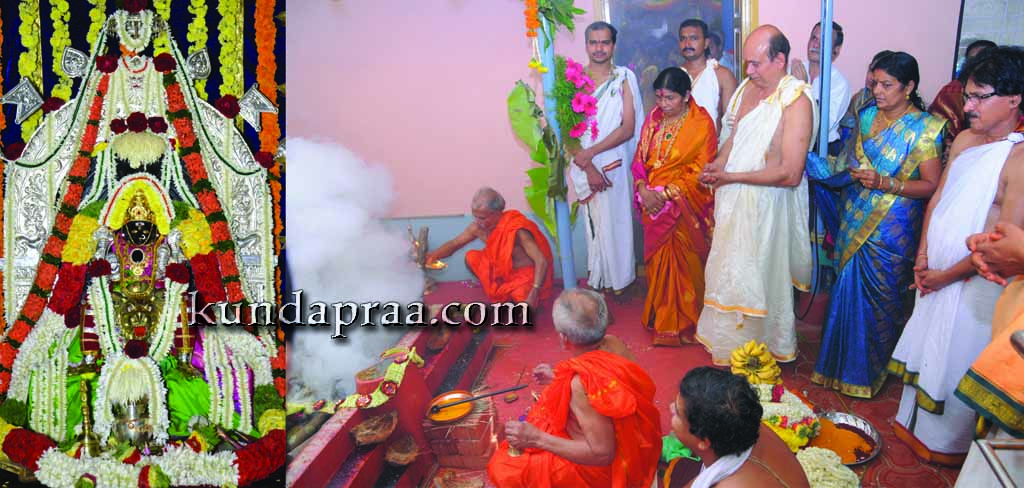 ಕುಂದಾಪುರ: ಇಲ್ಲಿನ ಶ್ರೀ ಬಗಳಾಂಬ ತಾಯಿ ದೇವಸ್ಥಾನದಲ್ಲಿ ಶರನ್ನವರಾತ್ರಿ ಉತ್ಸವವು ಶ್ರೀ ಗುರುಪರಾಶಕ್ತಿ ಮಠ, ಮರಕಡದ ಶ್ರೀ ನರೇಂದ್ರನಾಥ ಯೋಗೀಶ್ವರೇಶ್ವರ ಸ್ವಾಮಿಗಳವರ ಅನುಗ್ರಹದೊಂದಿಗೆ ವೇದಮೂರ್ತಿ ಕೆ. ಚಂದ್ರಶೇಖರ ಸೋಮಯಾಜಿಯವರ ನೇತೃತ್ವದಲ್ಲಿ ಸಕಲ ಧಾರ್ಮಿಕ ವಿಧಿವಿದಾನಗಳೊಂದಿಗೆ ಸಂಭ್ರಮ ಸಡಗರದಲ್ಲಿ ಜರುಗಿತು.