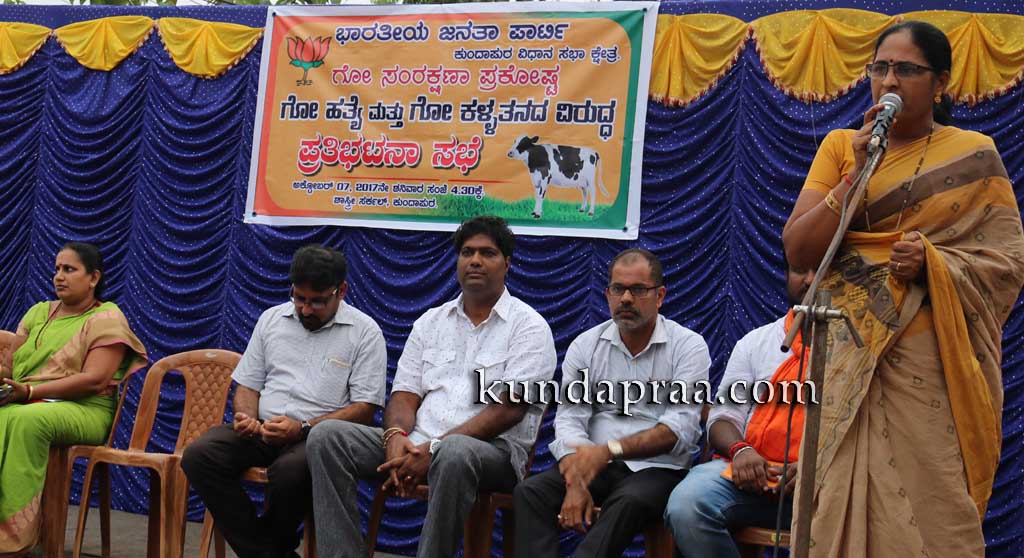 ಅವರು ಭಾರತೀಯ ಜನತಾ ಪಾರ್ಟಿ ಕುಂದಾಪುರ ವಿಧಾನ ಸಭಾ ಕ್ಷೇತ್ರ ಗೋಸಂರಕ್ಷಣಾ ಪ್ರಕೋಷ್ಠದ ಆಶ್ರಯದಲ್ಲಿ ಕುಂದಾಪುರ ಶಾಸ್ತ್ರಿ ವೃತ್ತದ ಬಳಿ ನಡೆದ ಗೋಹತ್ಯೆ ಹಾಗೂ ಗೊಳ್ಳತನ ವಿರುದ್ಧ ಪ್ರತಿಭಟನೆಯಲ್ಲಿ ಮಾತನಾಡಿ ಗೋಹತ್ಯಗೆ ಮುಂದೆ ನಿಂತು ಪೋಷಿಸುತ್ತಿರುವುದರಿಂದ ನಿರ್ಭ್ಯಯವಾಗಿ ಗೋಕಳವು ನಡೆಯುತ್ತಿದ್ದು, ಕರಾವಳಿಯಲ್ಲಂತೂ ಕಳ್ಳತನ ಎಗ್ಗಿಲ್ಲದೆ ನಡೆಯುತ್ತಿದೆ. ಮಾದಕ ವಸ್ತುಗಳ ಮಾರಾಟದ ಬಗ್ಗೆ ಮಾಹಿತಿ ನೀಡಿದರೆ ನಿರ್ಧಾಕ್ಷಿಣ್ಯವಾಗಿ ಕೊಲ್ಲಲಾಗುತ್ತಿದೆ. ಈ ಕೊಲೆಯ ಹಿಂದೆ ಟಾರ್ಗೆಟ್ ಗ್ರೂಫ್ ಇದ್ದು, ಇವರ ರಕ್ಷಣೆ ದಕ ಜಿಲ್ಲೆ ಸಚಿವರೇ ಮಾಡುತ್ತಾರೆ. ಪೊಲೀಸರು ಆಡಳತ ಪಕ್ಷದ ಕೈಗೊಂಬೆಯಂತೆ ವರ್ತಿಸುತ್ತಾರೆ ಎಂದು ಹರಿಹಾಯ್ದರು.