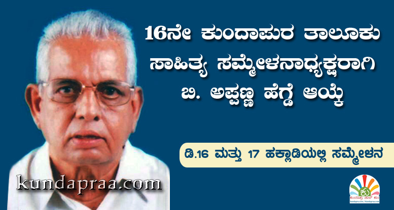 ಕುಂದಾಪುರ: ಕುಂದಾಪುರ ತಾಲೂಕು 16 ನೇ ಕನ್ನಡ ಸಾಹಿತ್ಯ ಸಮ್ಮೇಳವು ಡಿಸೆಂಬರ್ 16 ಮತ್ತು 17 ರಂದು ಹಕ್ಲಾಡಿಯ ಕೆಎಸ್ಎಸ್ ಸರಕಾರಿ ಪ್ರೌಢಶಾಲೆಯ ಆವರಣದಲ್ಲಿ ಜರುಗಲಿದೆ. ಅಪರಾಹ್ನ 3 ಗಂಟೆಯಿಂದ ರಾತ್ರಿ 9 ಗಂಟೆಯ ತನಕ ನಡೆಯುವ ಸಮ್ಮೇಳನದಲ್ಲಿ ವಿಚಾರಗೋಷ್ಠಿ, ಕವಿಗೋಷ್ಠಿ ಹಾಗೂ ವಿವಿಧ ಸಾಂಸ್ಕೃತಿಕ ಕಾರ್ಯಕ್ರಮಗಳನ್ನು ಆಯೋಜಿಸಲಾಗಿದೆ. ಸಮ್ಮೇಳನಾಧ್ಯಕ್ಷರನ್ನಾಗಿ ಹಿರಿಯ ಸಾಂಸ್ಕೃತಿಕ ನೇತಾರ ಬಿ.ಅಪ್ಪಣ್ಣ ಹೆಗ್ಡೆಯವರನ್ನು ಆಯ್ಕೆ ಮಾಡಲಾಗಿದೆ. ಎರಡು ದಿನಗಳ ಈ ನುಡಿಹಬ್ಬದಲ್ಲಿ ಸಾಹಿತ್ಯಾಭಿಮಾನಿಗಳು ಅತೀ ಹೆಚ್ಚಿನ ಸಂಖ್ಯೆಯಲ್ಲಿ ಭಾಗವಹಿಸಿ ಸಮ್ಮೇಳನವನ್ನು ಯಶಸ್ವಿಗೊಳಿಸಬೇಕಾಗಿ ಪರಿಷತ್ ಪ್ರಕಟಣೆಯಲ್ಲಿ ಕೋರಲಾಗಿದೆ.