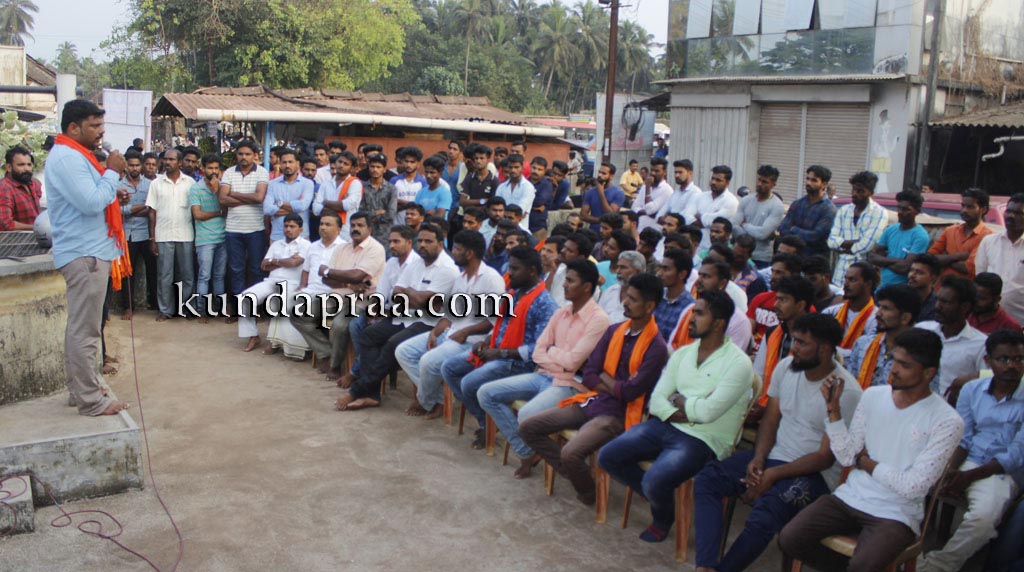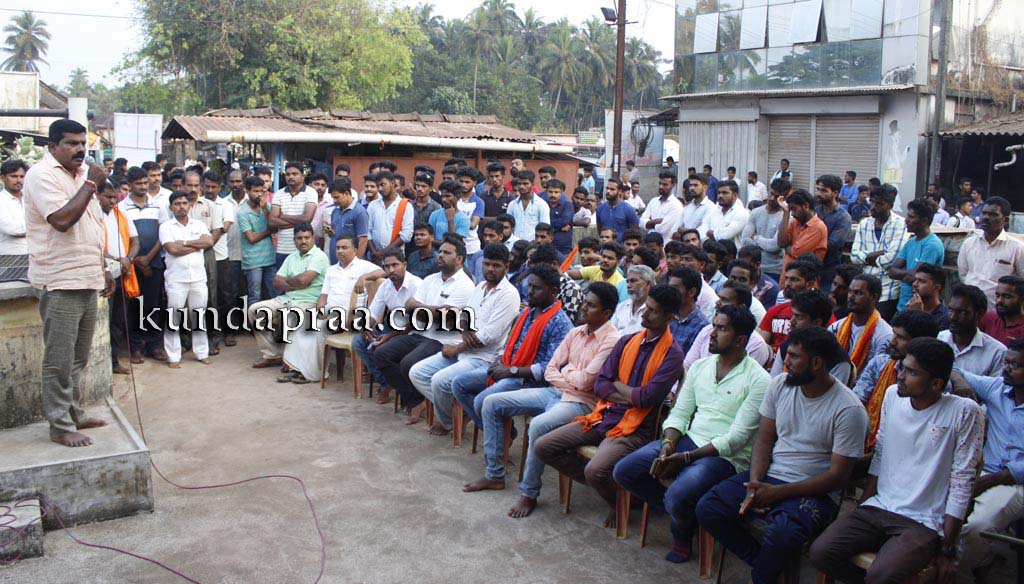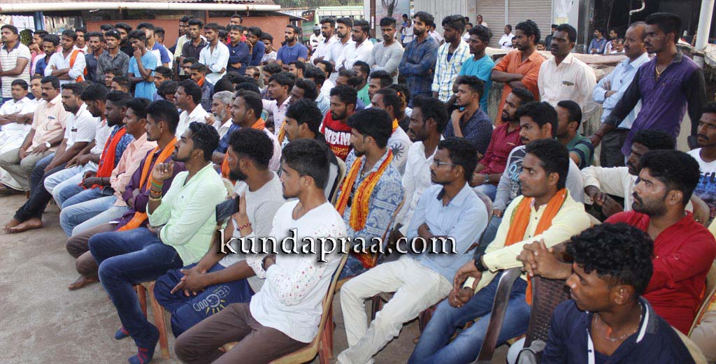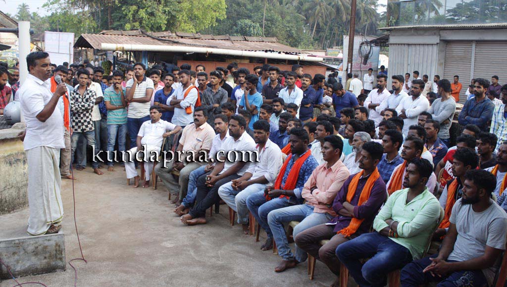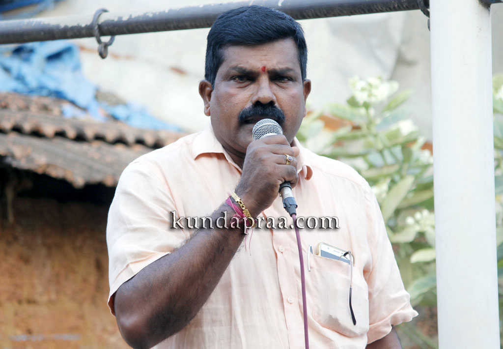 ಅವರು ಹೊನ್ನಾವರ ಪರೇಶ್ ಮೇಸ್ತ ಅವರಅನುಮಾನಾಸ್ಪದ ಸಾವು ಹಾಗೂ ರಾಜ್ಯ ಸರಕಾರದ ಹಿಂದೂ ವಿರೋಧಿ ನಿಲುವು ಖಂಡಿಸಿ ಬೈಂದೂರುಆಂಜನೇಯದೇವಸ್ಥಾನದಆವರಣದಲ್ಲಿಜರುಗಿದ ಪ್ರತಿಭಟನಾ ಸಭೆಯಲ್ಲಿ ಮಾತನಾಡಿ ಹಿಂದುಕಾರ್ಯಕರ್ತರು ಹಾಗೂ ಅಮಾಯಕರನ್ನು ಕೊಲೆ ಮಾಡಿ ಬಳಿಕ ಅದನ್ನು ಸಹಜ ಸಾವು ಎಂದು ಬಿಂಬಿಸುವ ಷಡ್ಯಂತ್ರ ನಡೆದಿದೆ. ಹೊನ್ನಾವರದ ಪರೇಶ್ ಮೇಸ್ತನನ್ನು ಹತ್ಯೆಮಾಡಿ ಪ್ರಕರಣವನ್ನು ಮುಚ್ಚಿಹಾಕಲಾಗುತ್ತಿದೆ. ಪ್ರತಿಭಟನೆಯನ್ನುತಡೆದು ಹಿಂದೂಕಾರ್ಯಕರ್ತರ ಬಲ ಕುಗ್ಗಿಸಲು ಸಾಧ್ಯವಿಲ್ಲ. ಹಿಂದೂಕಾರ್ಯಕರ್ತರು ಸಂಘಟಿತರಾಗಿ ಮುಂದುವರಿದು ನ್ಯಾಯಕ್ಕಾಗಿ ಆಗ್ರಹಿಸುತ್ತೇವೆ ಎಂದರು.